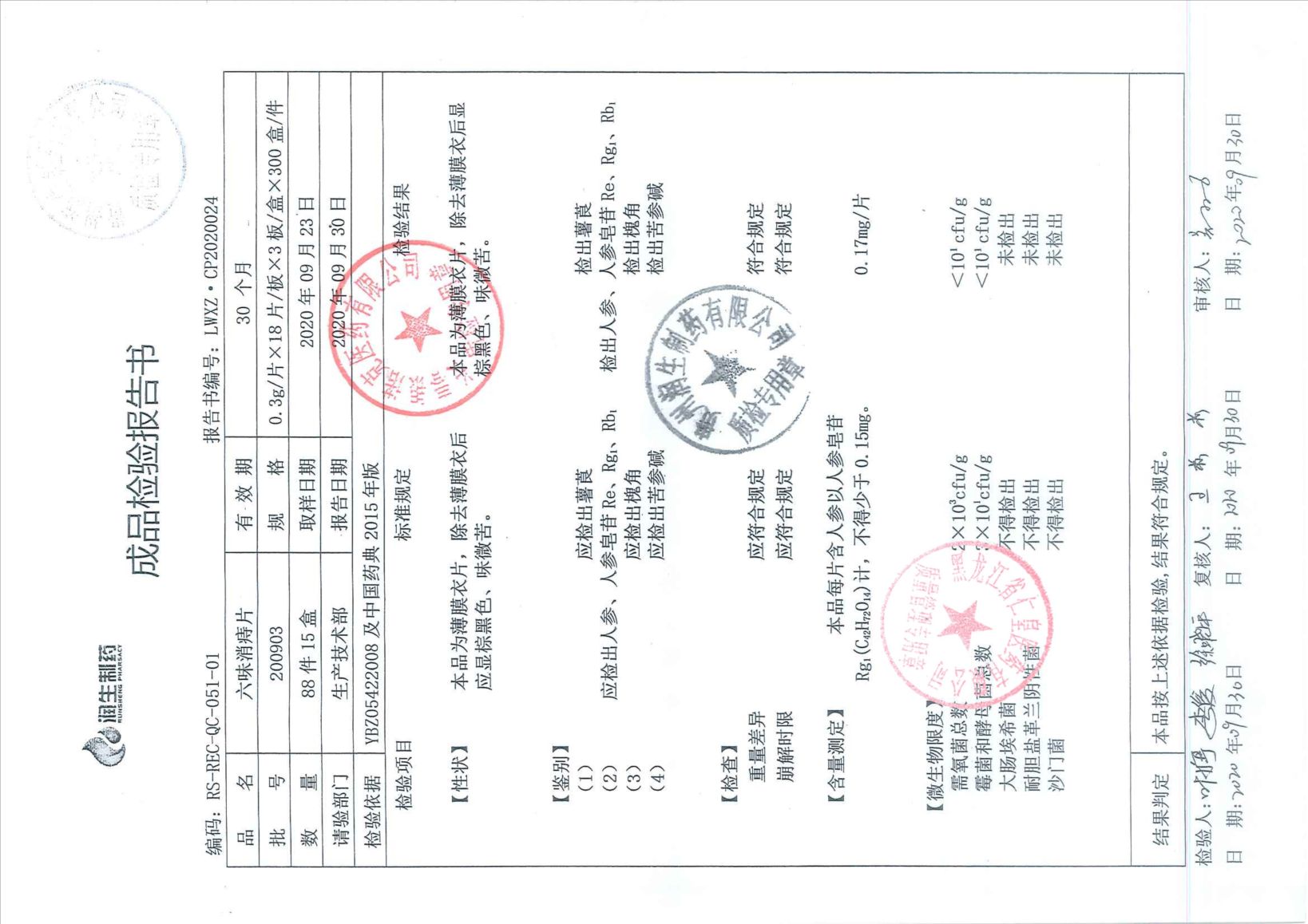 六味消痔片20090