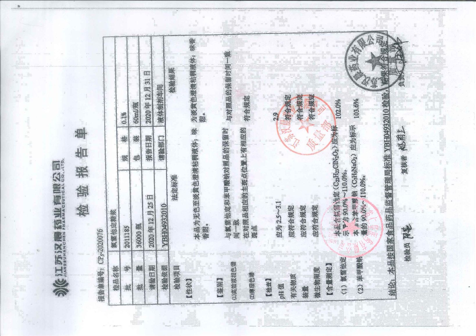 氯雷他定糖浆2011