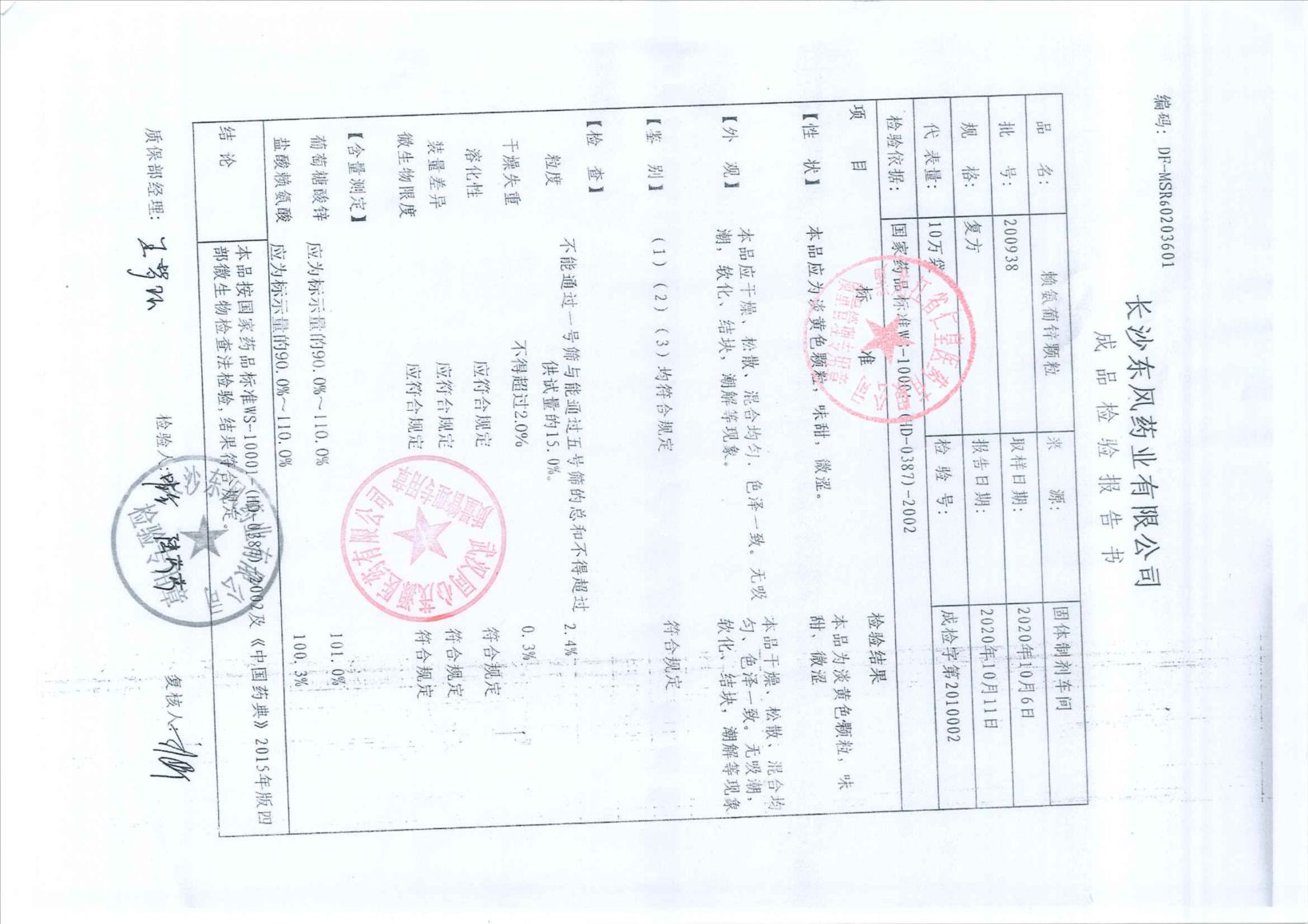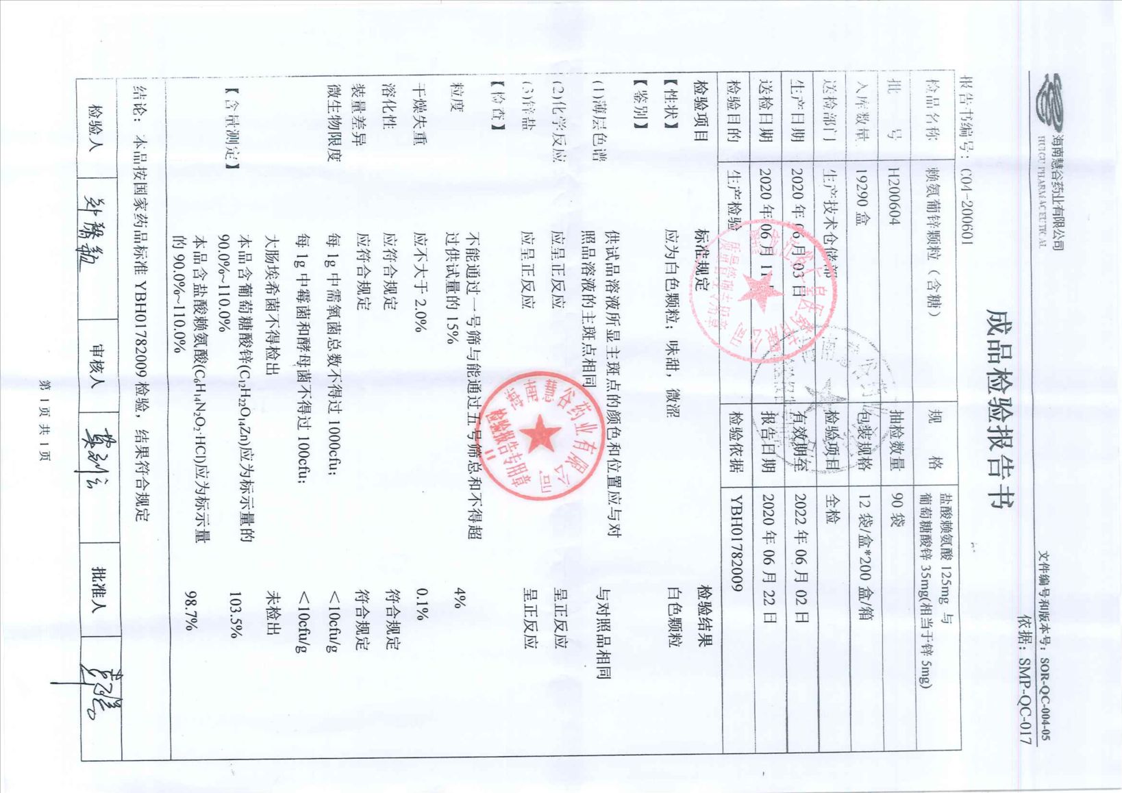 赖氨葡锌颗粒H200