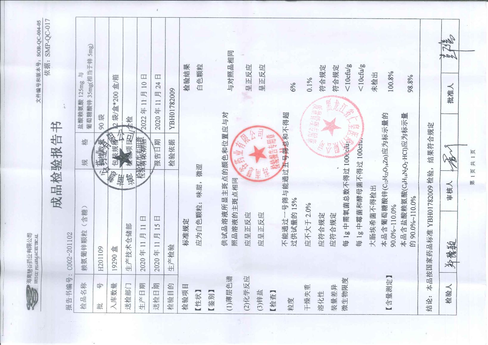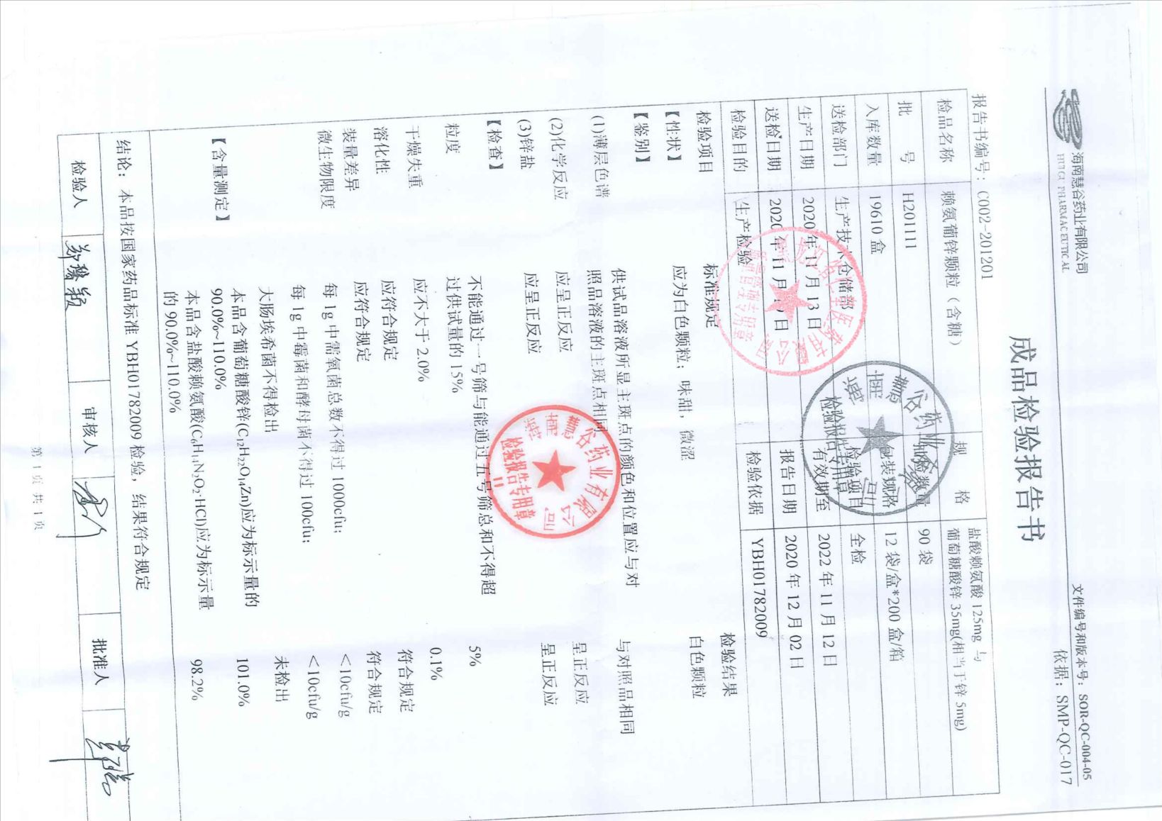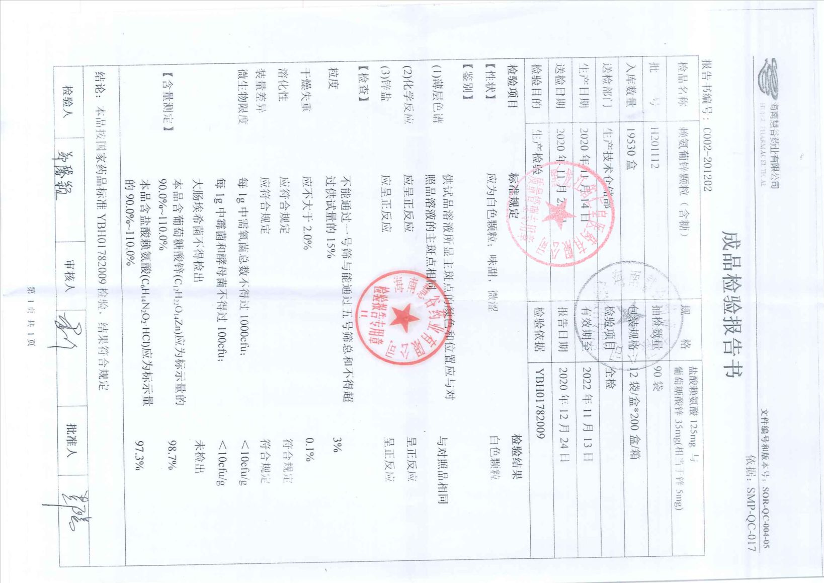 赖氨葡锌颗粒H201