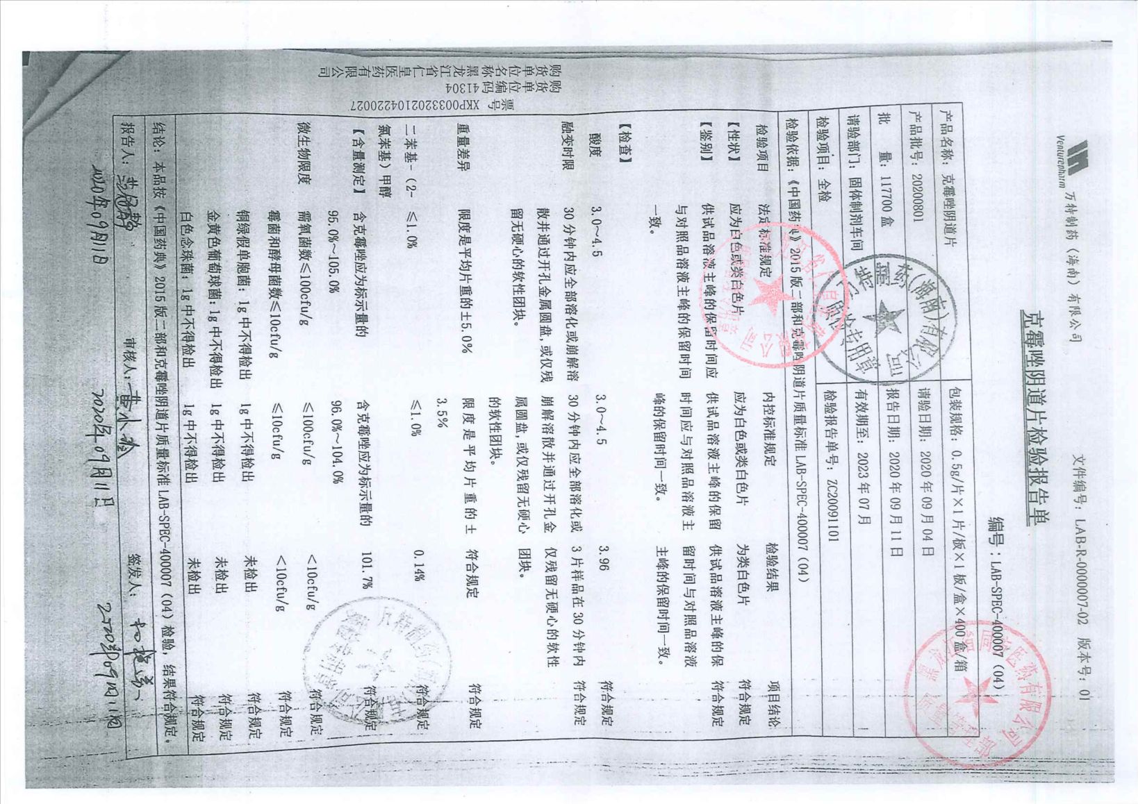 克霉唑阴道片2020