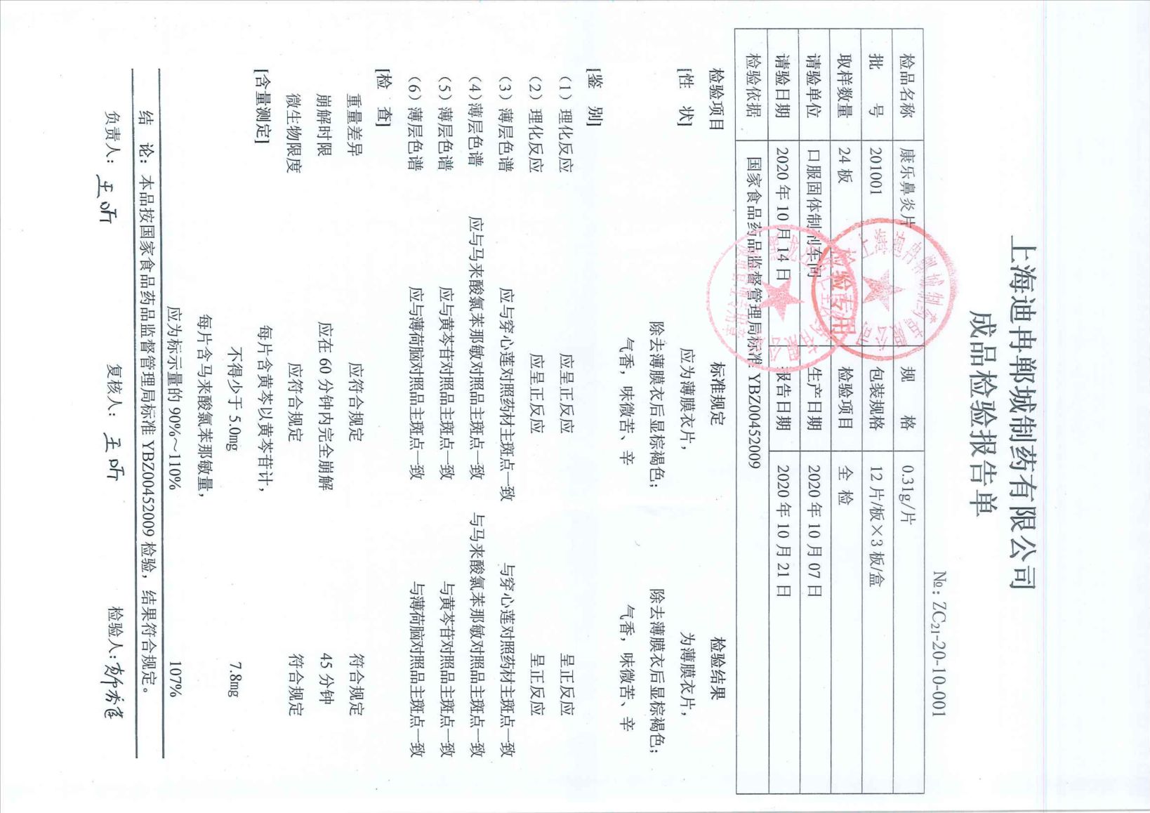 康乐鼻炎片20120