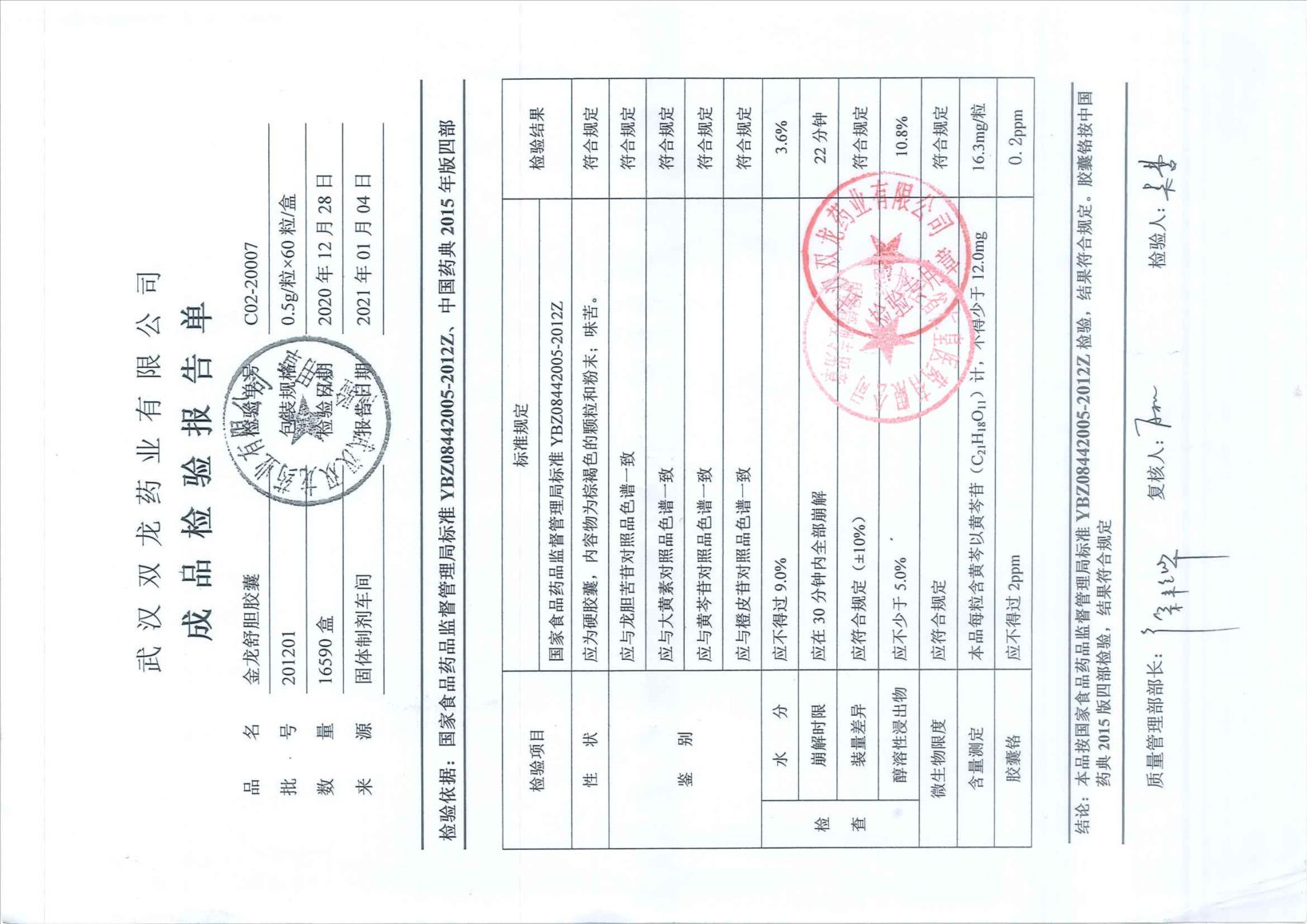 金龙舒胆胶囊2012