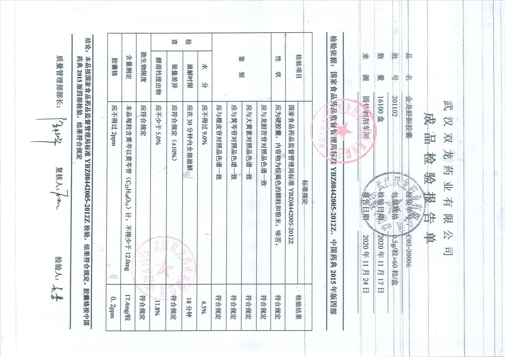金龙舒胆胶囊2011