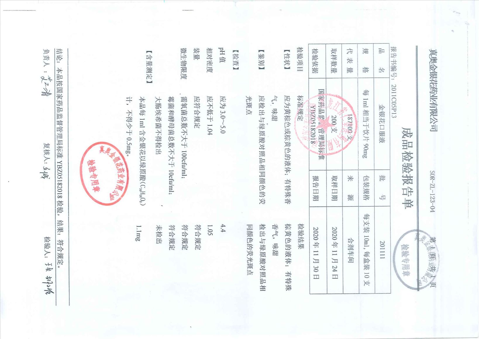 金银花口服液2011