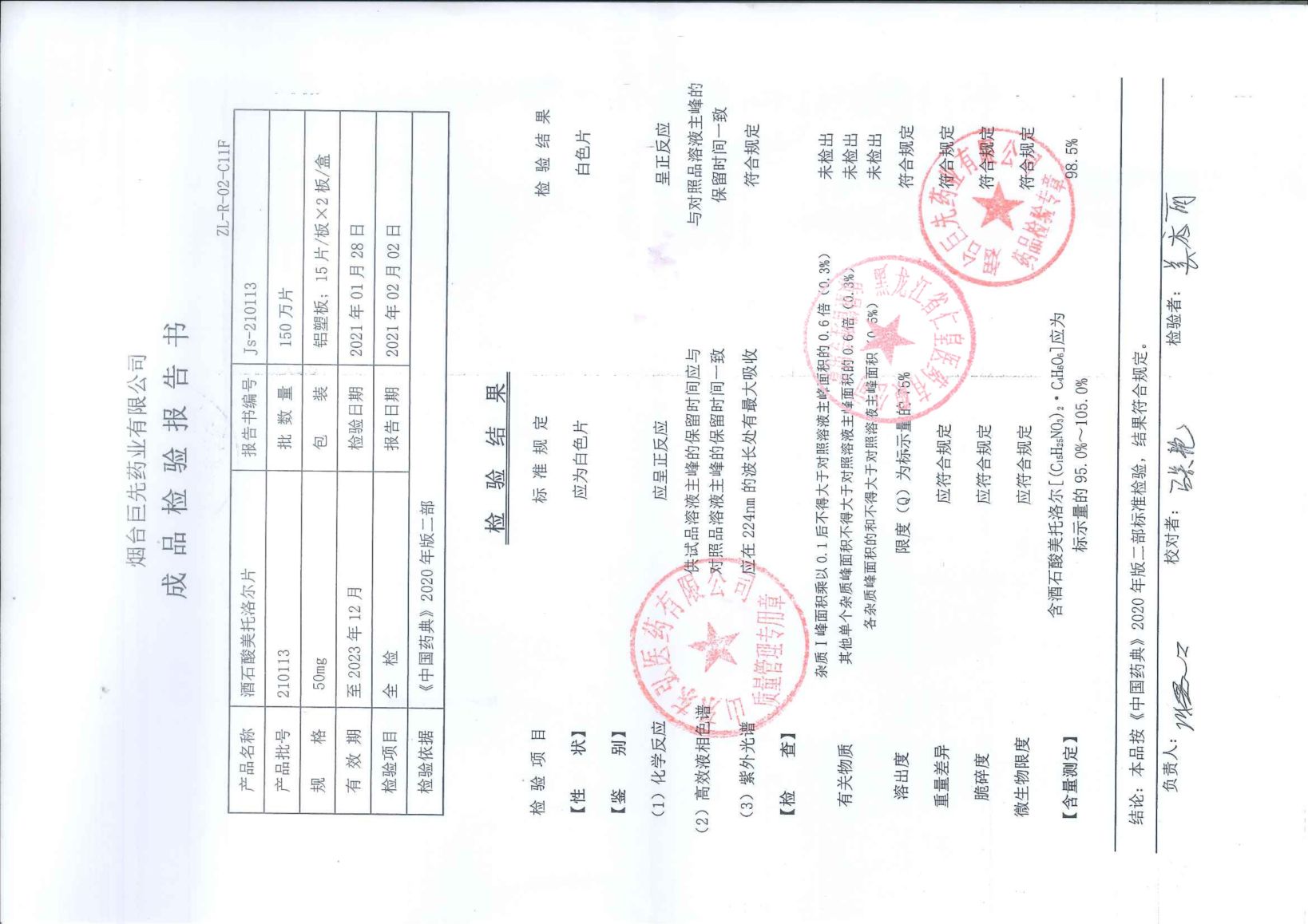 酒石酸美托洛尔片21