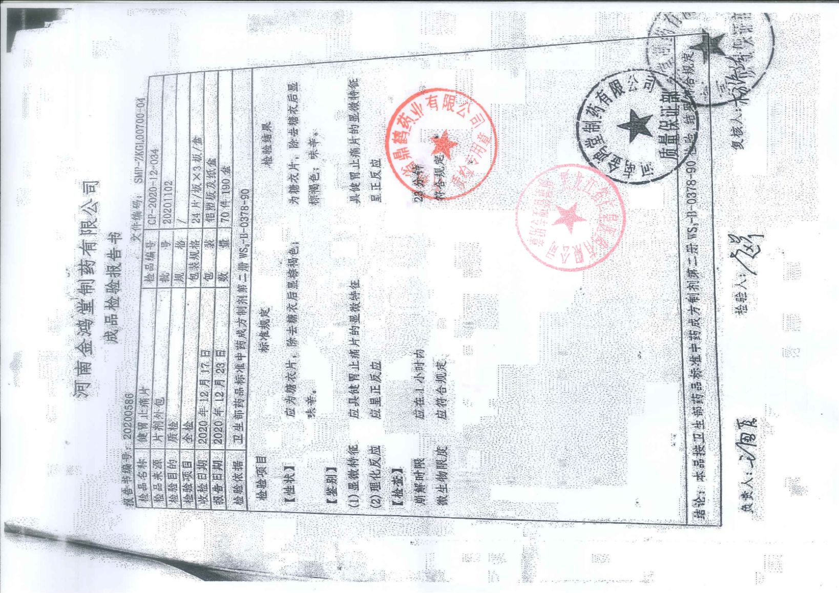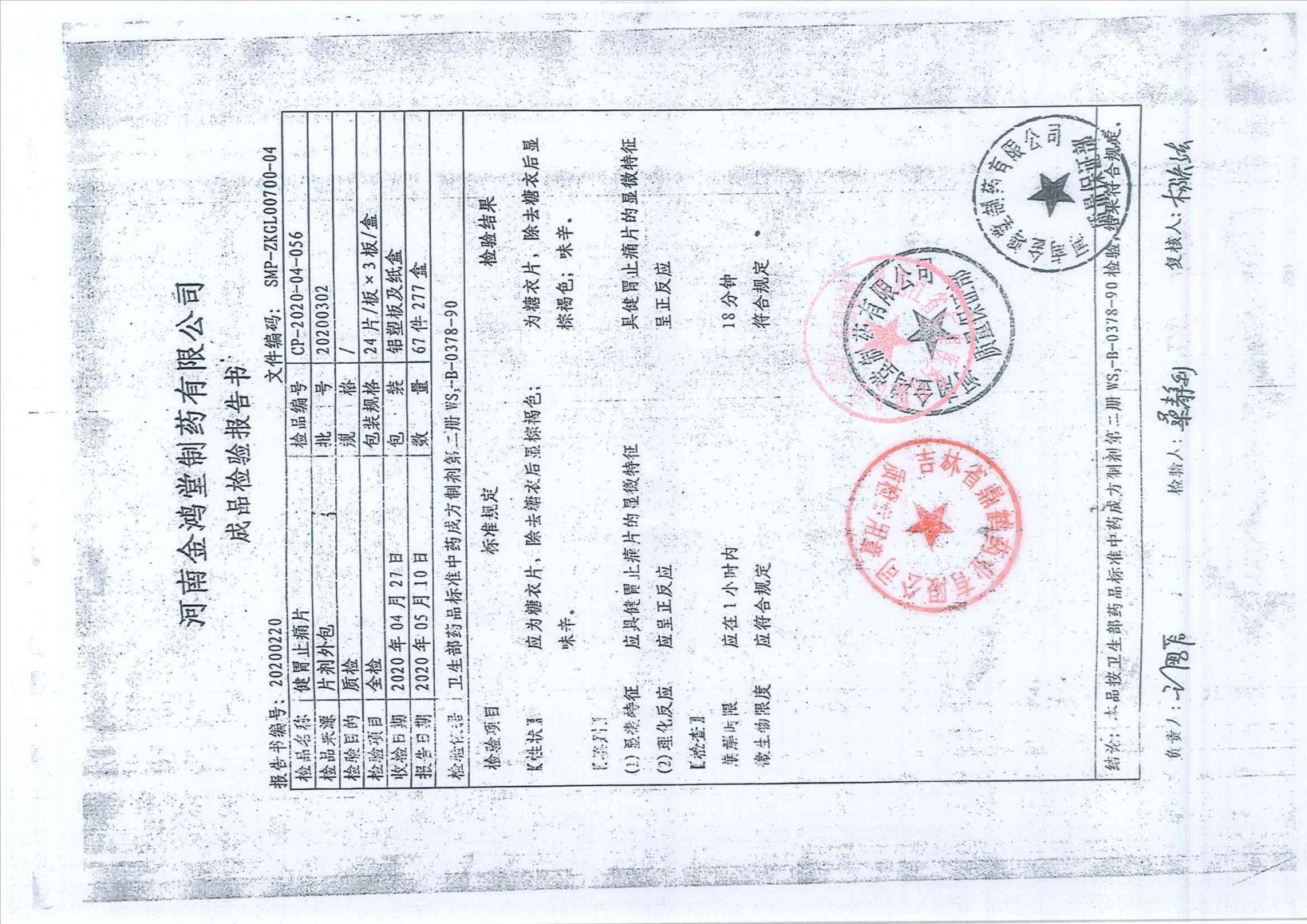 健胃止痛片20200