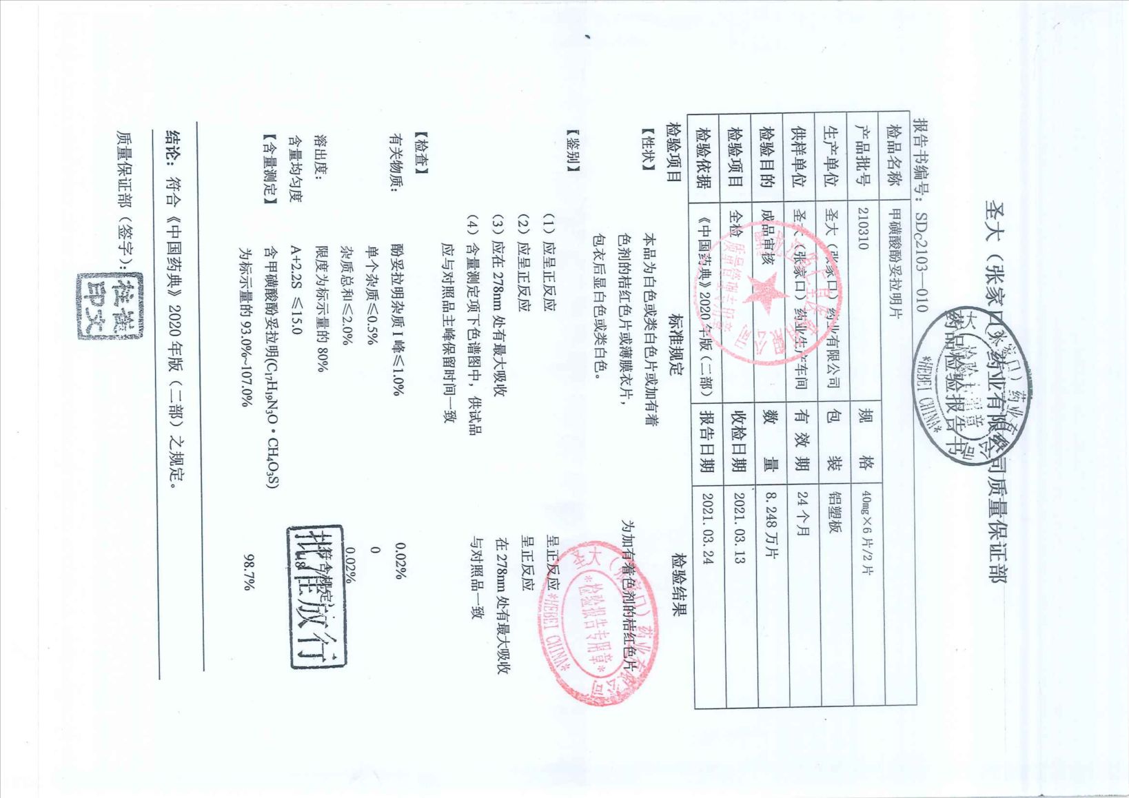 甲磺酸酚妥拉明片21