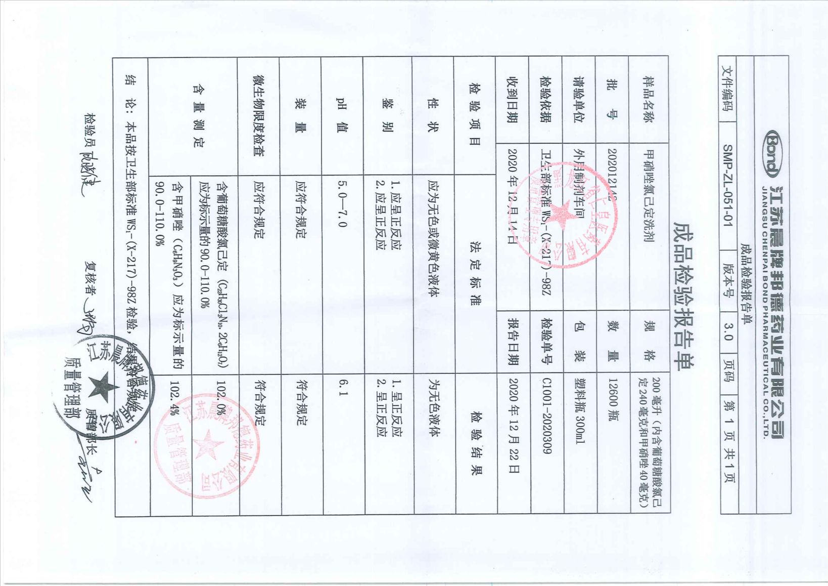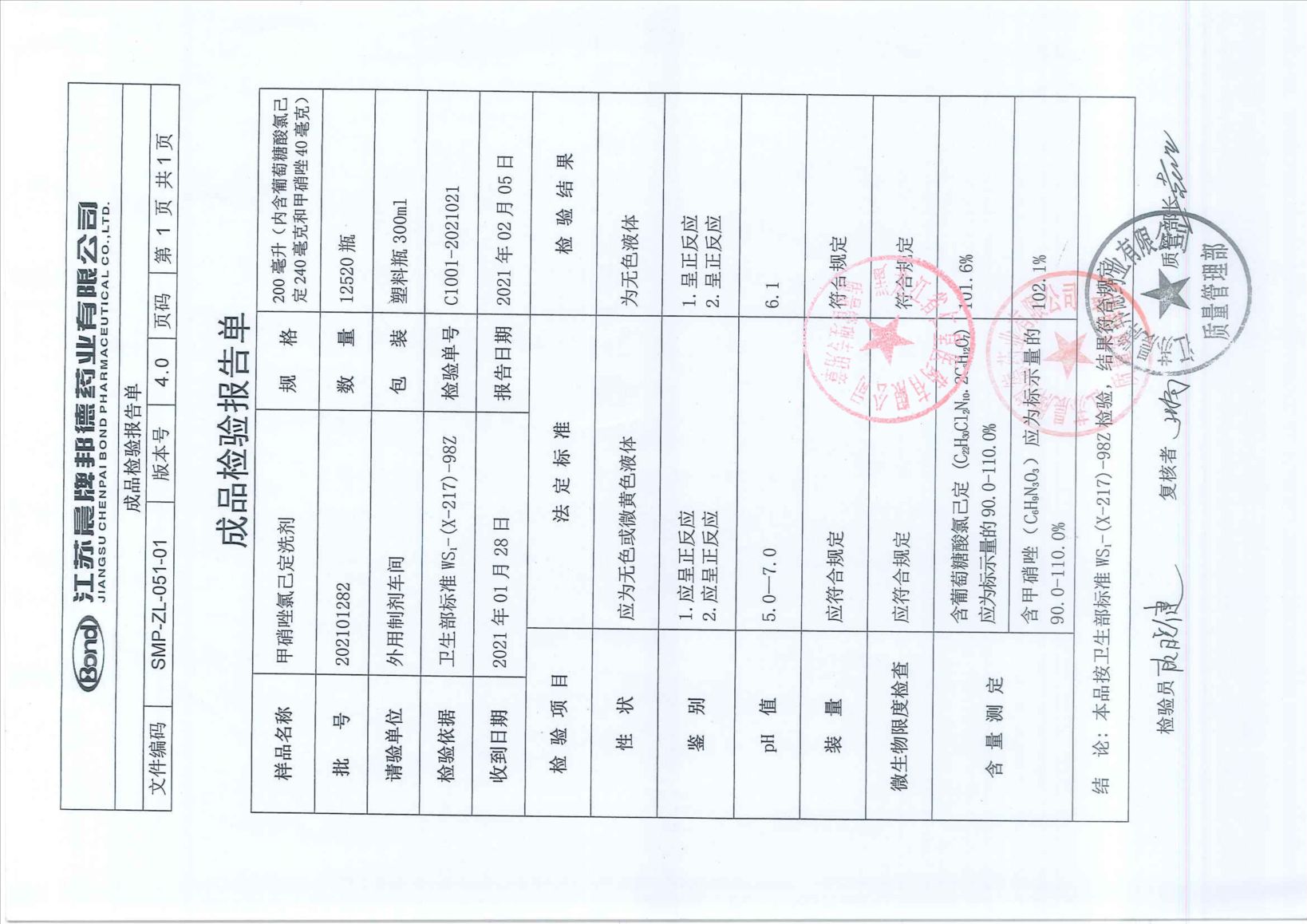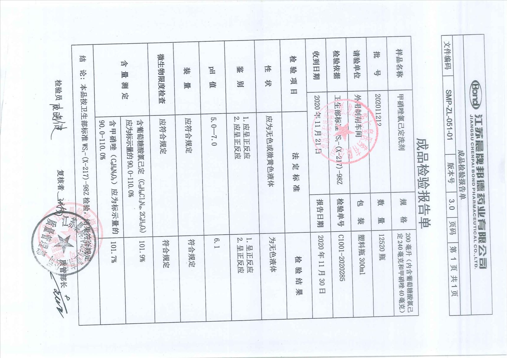 甲硝唑氯己定洗剂20