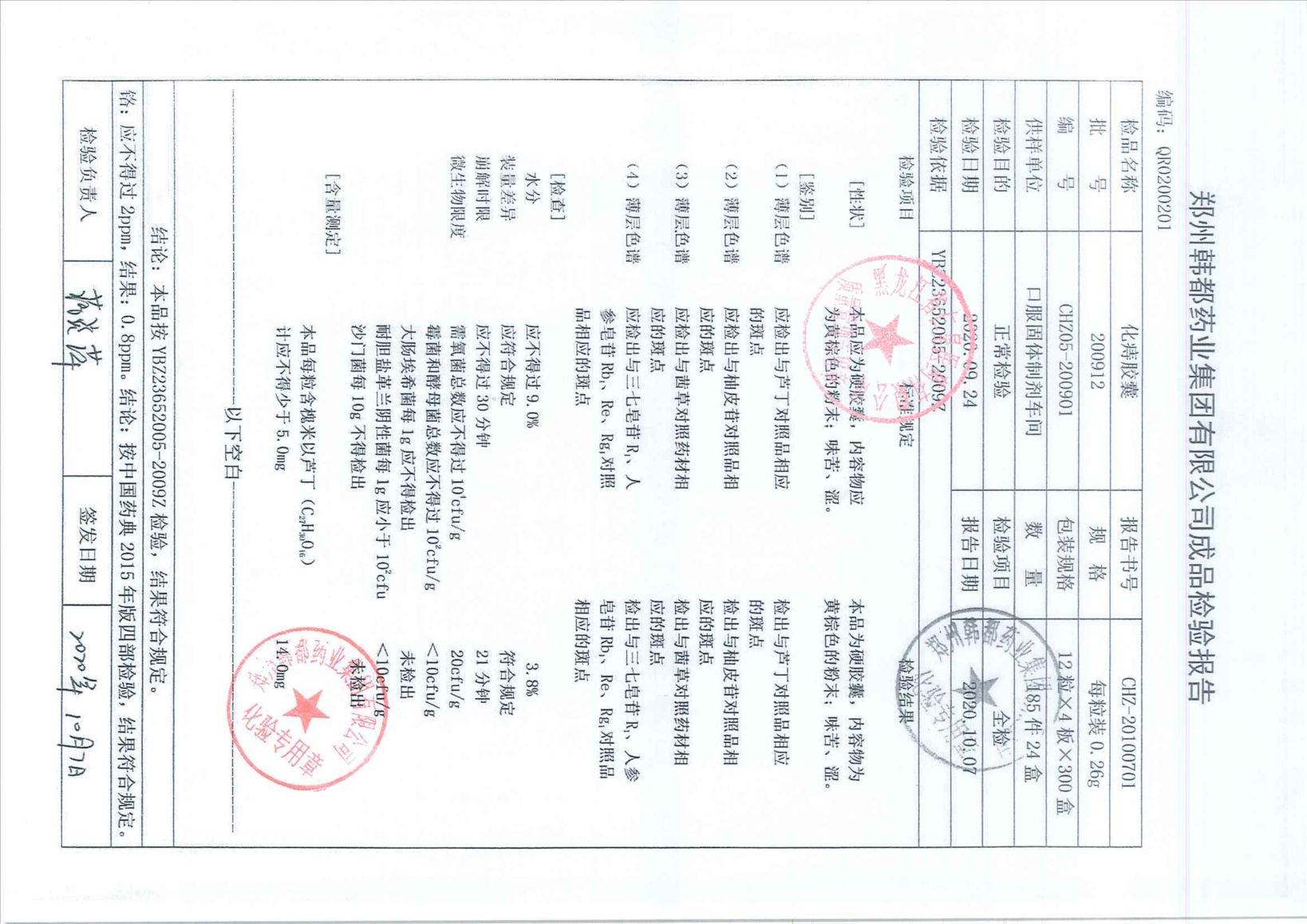 黄柏胶囊201006