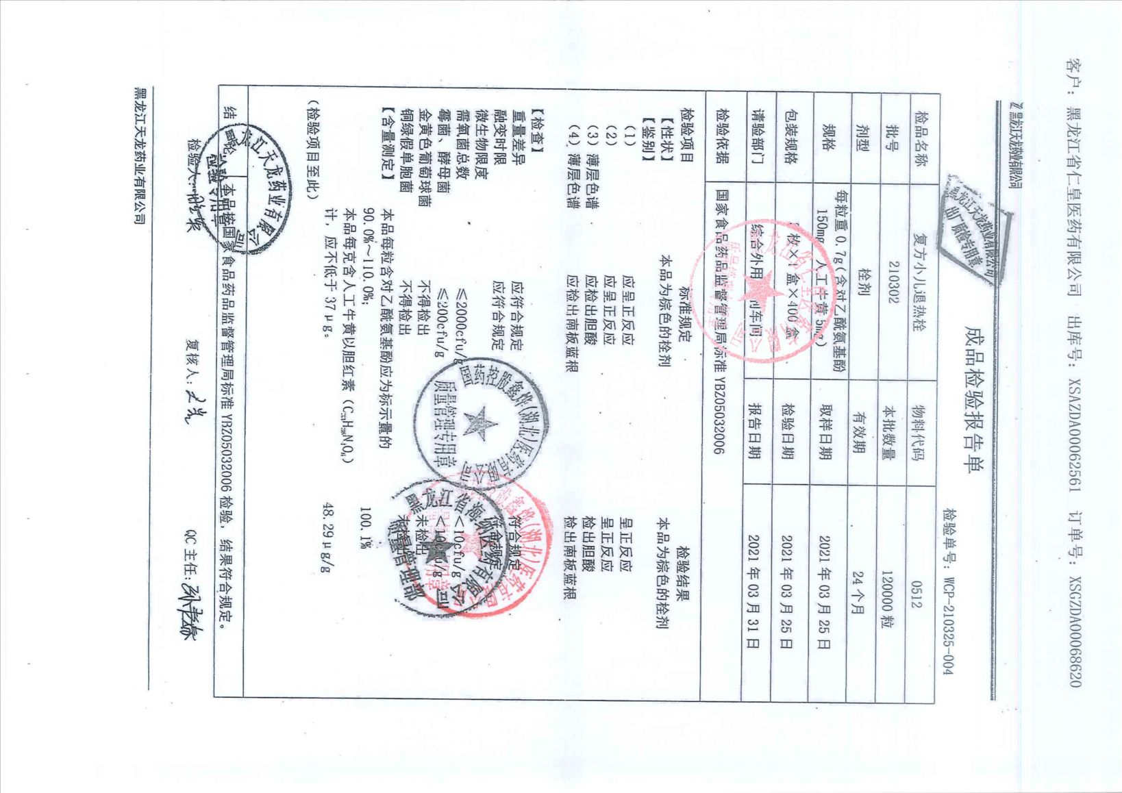 复方小儿退热栓210