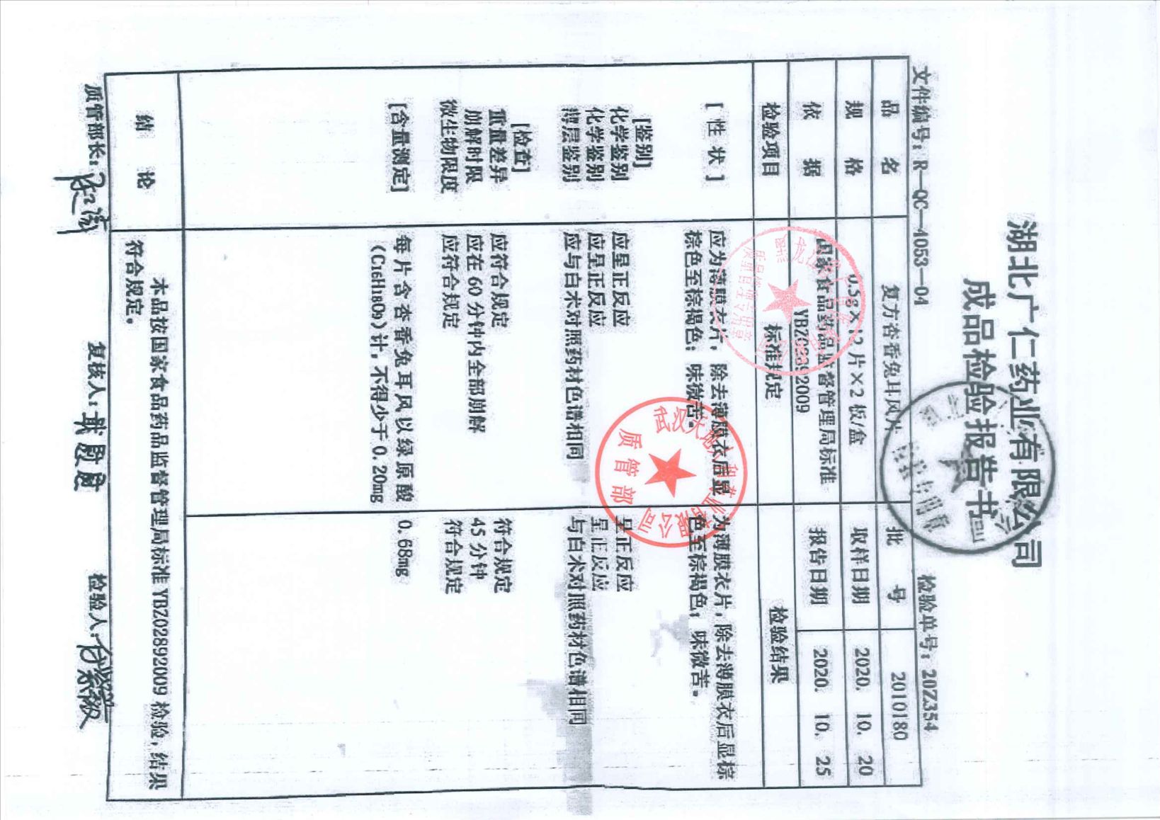复方杏香兔耳风片20
