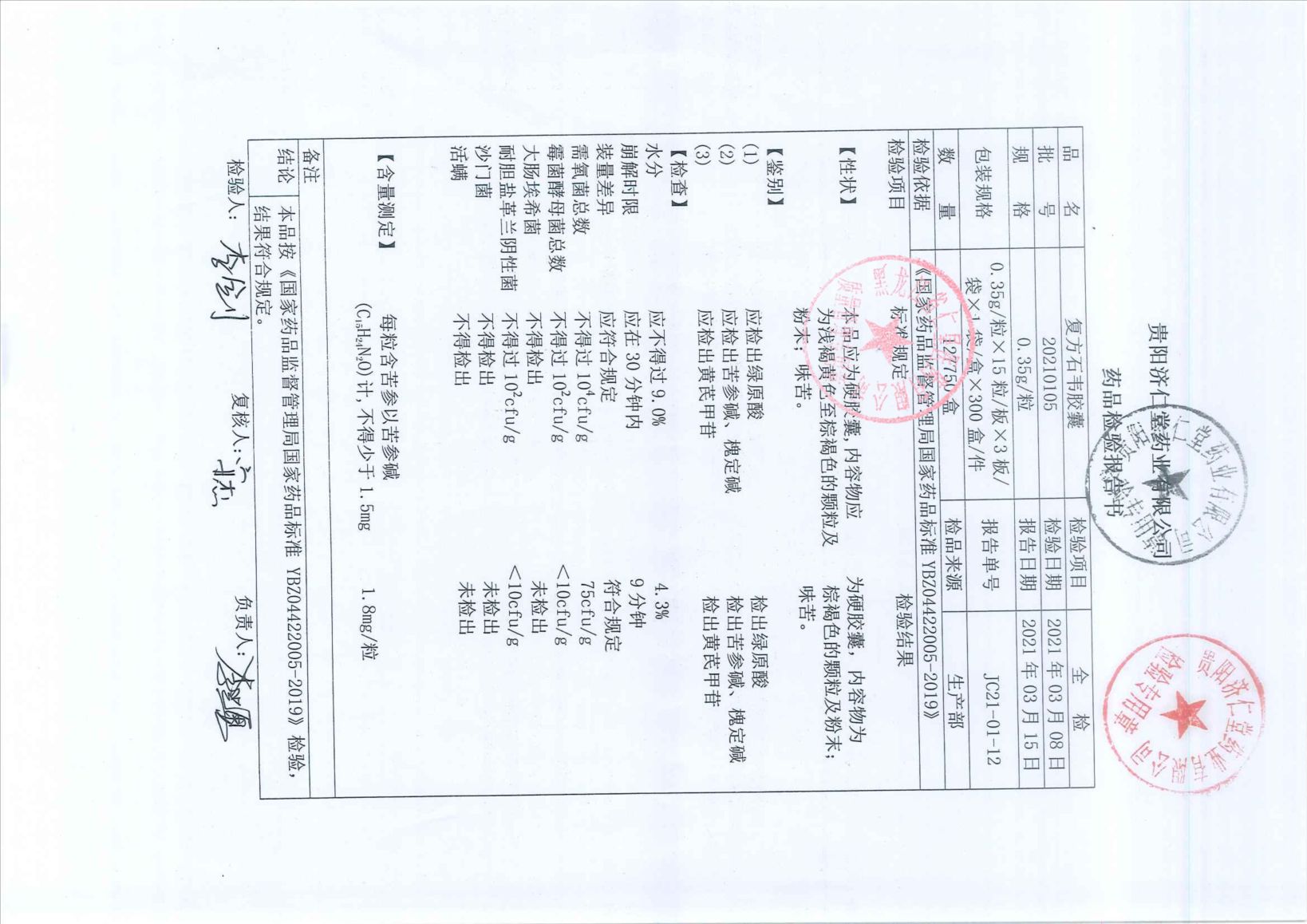 复方石韦胶囊2021