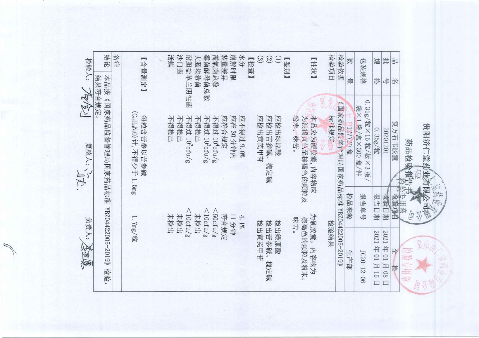 复方石韦胶囊2020