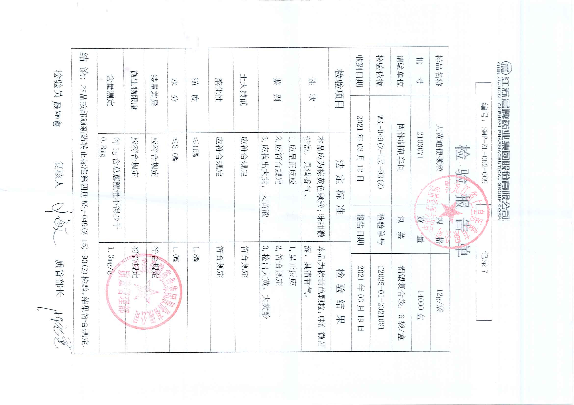 大黄通便颗粒2103