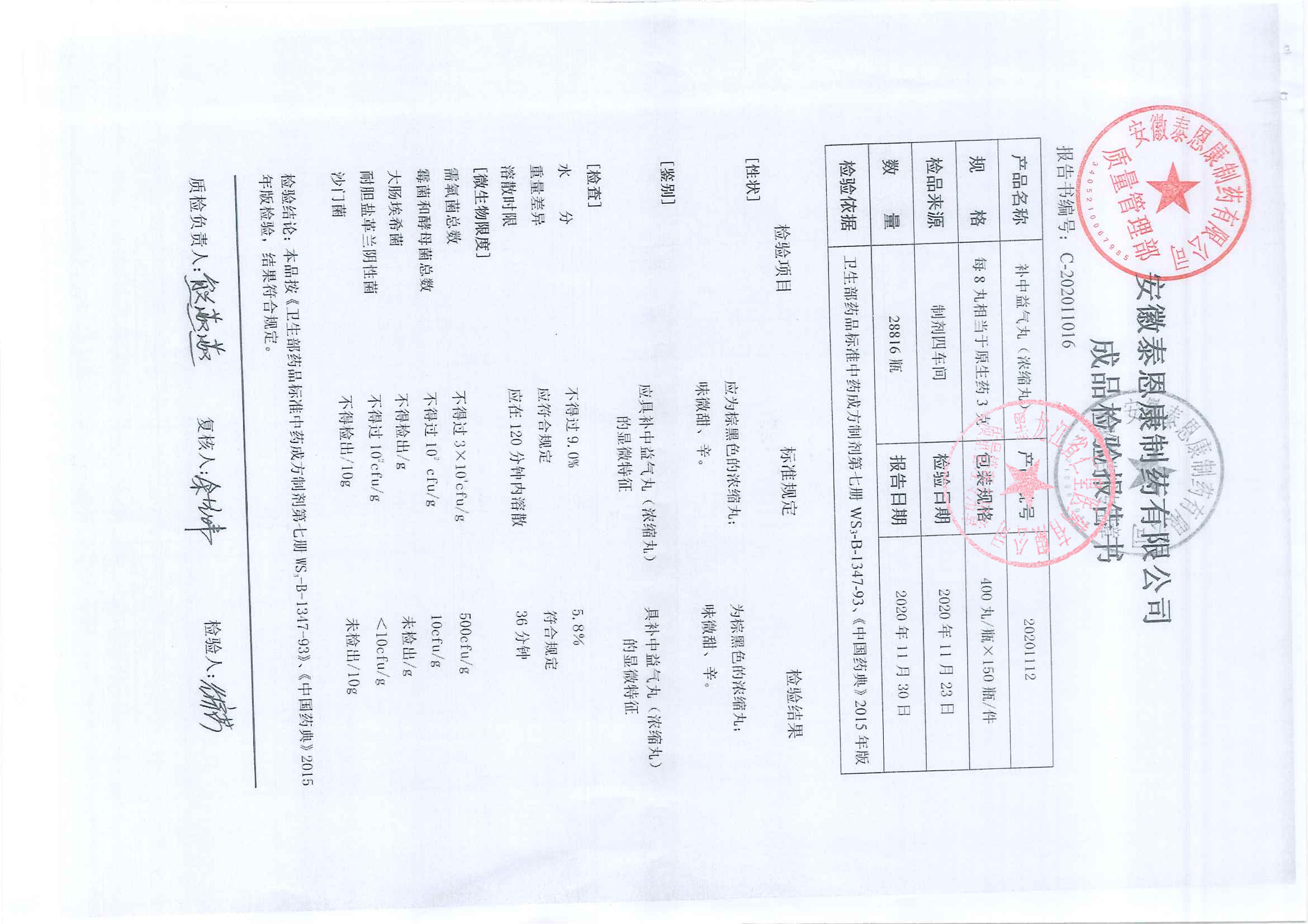 补中益气丸20201