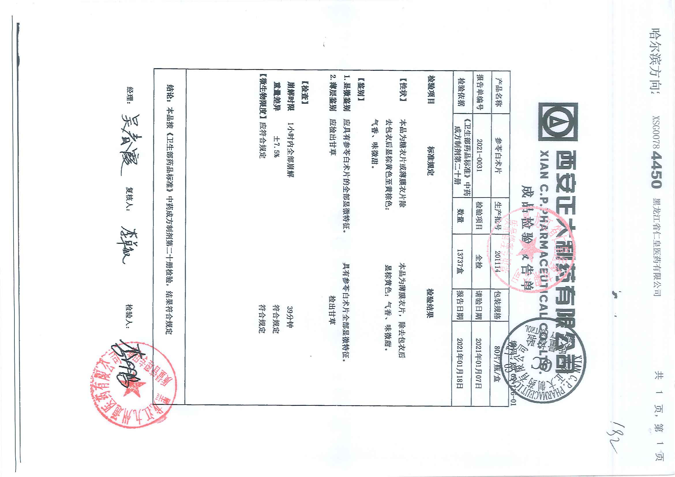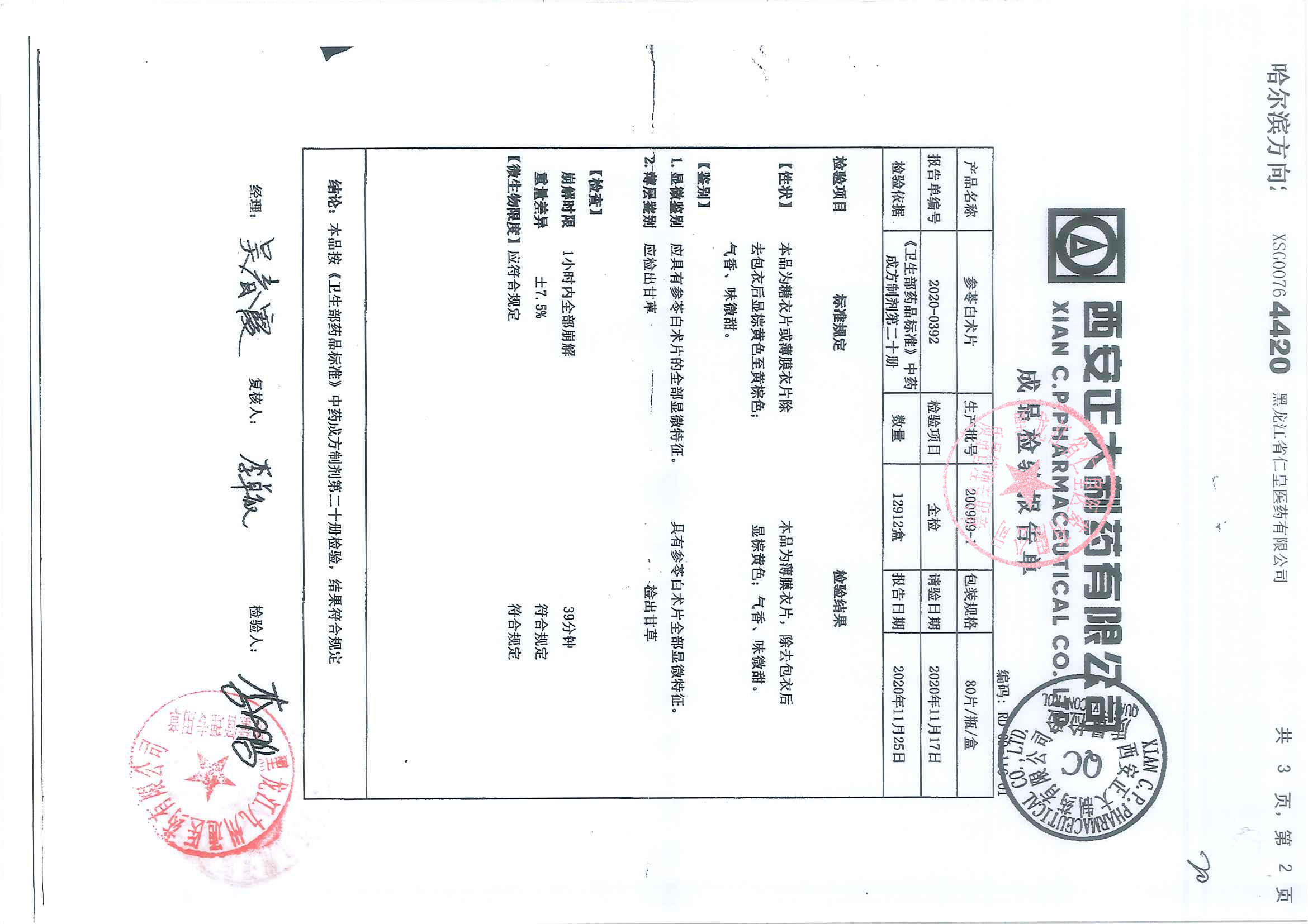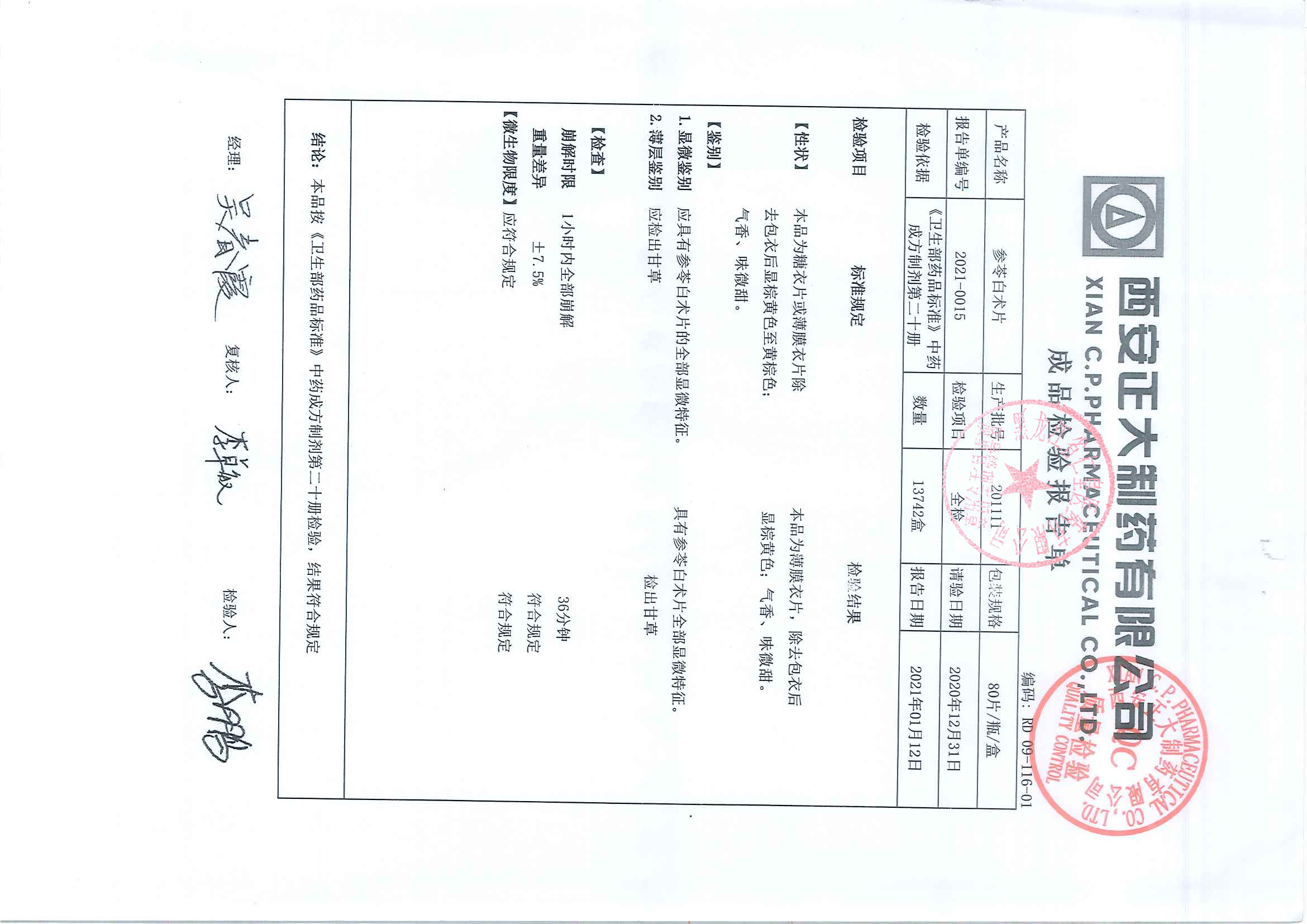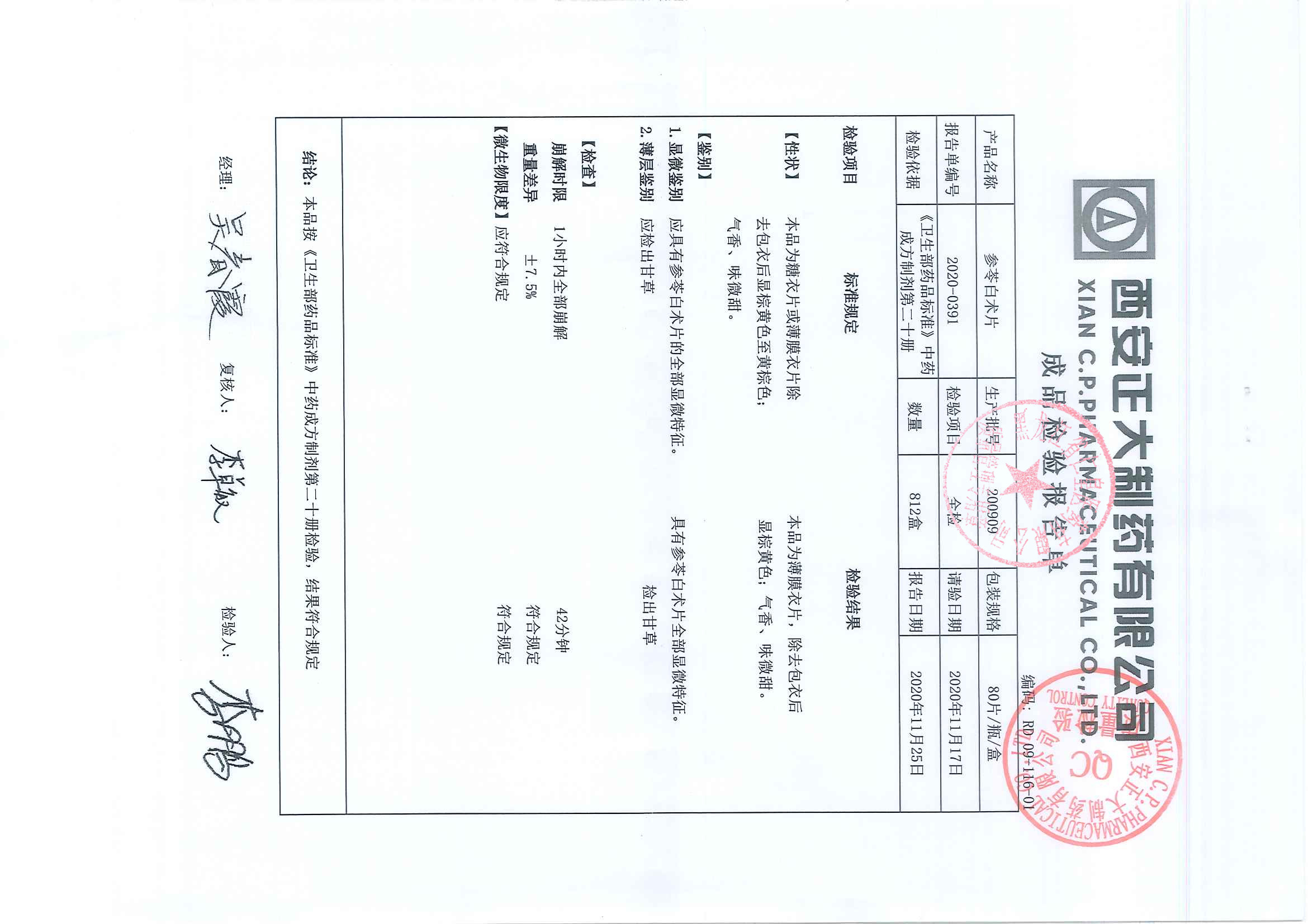 参苓白术片20111