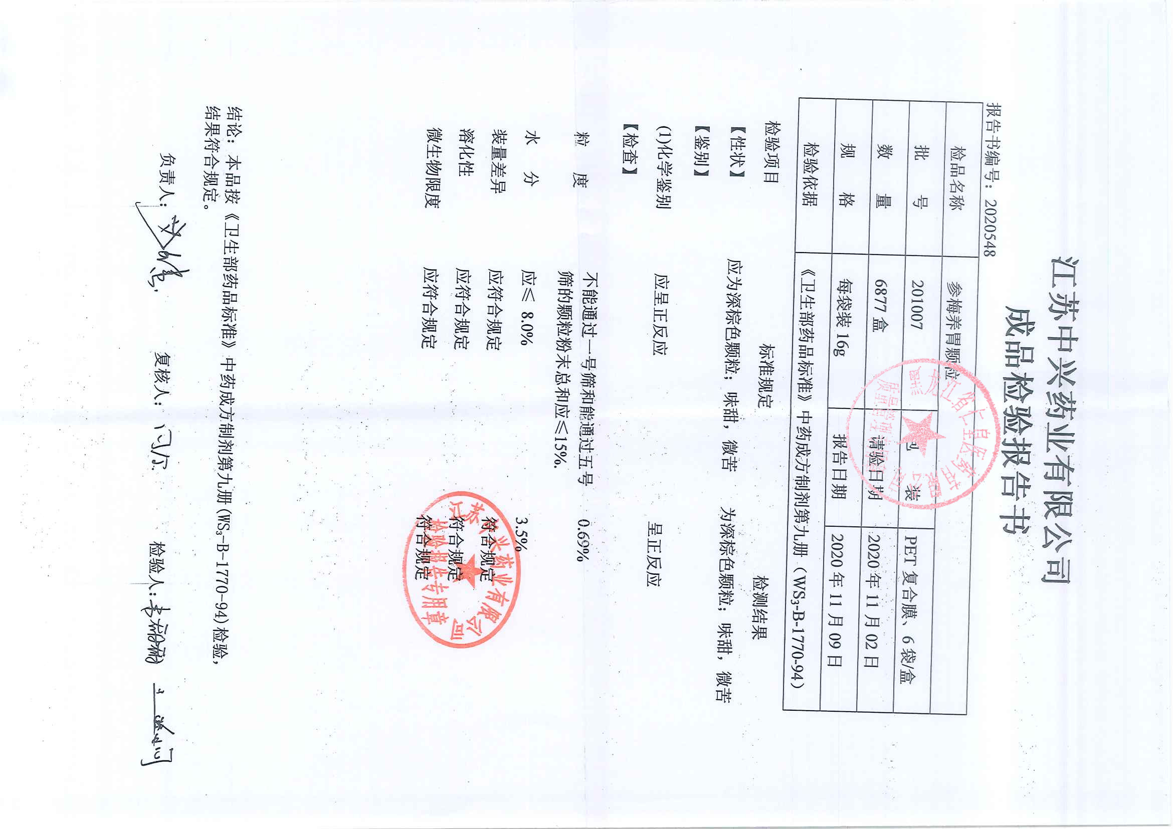 参梅养胃颗粒2010