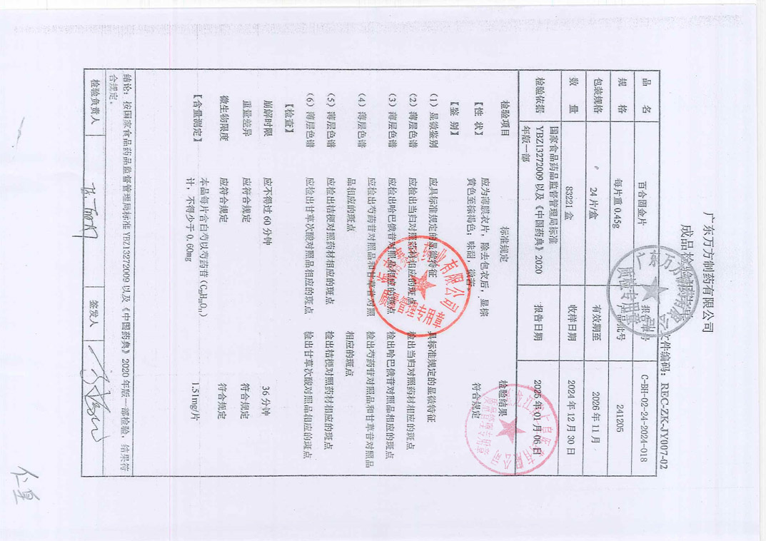百合固金片24120