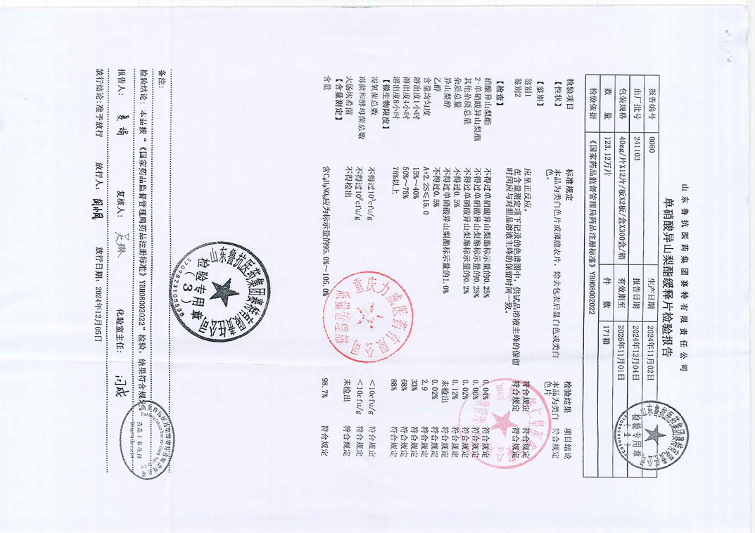 单硝酸异山梨酯缓释片