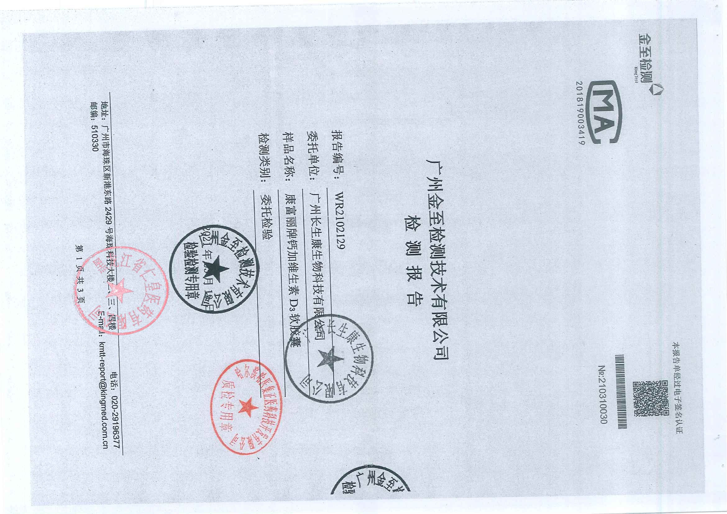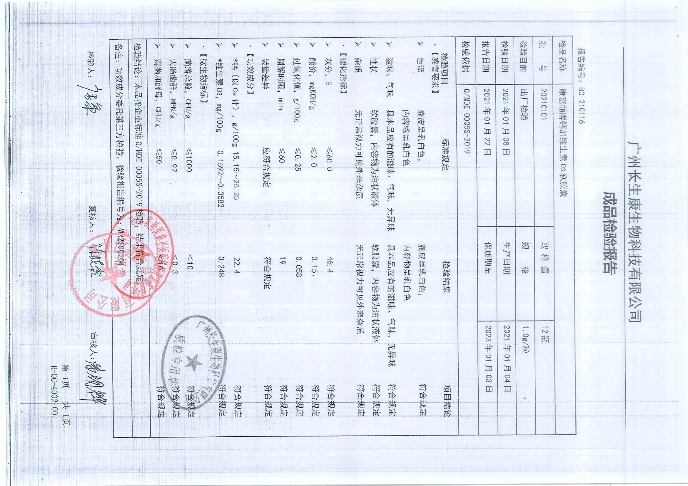 康富丽牌钙加维生素D