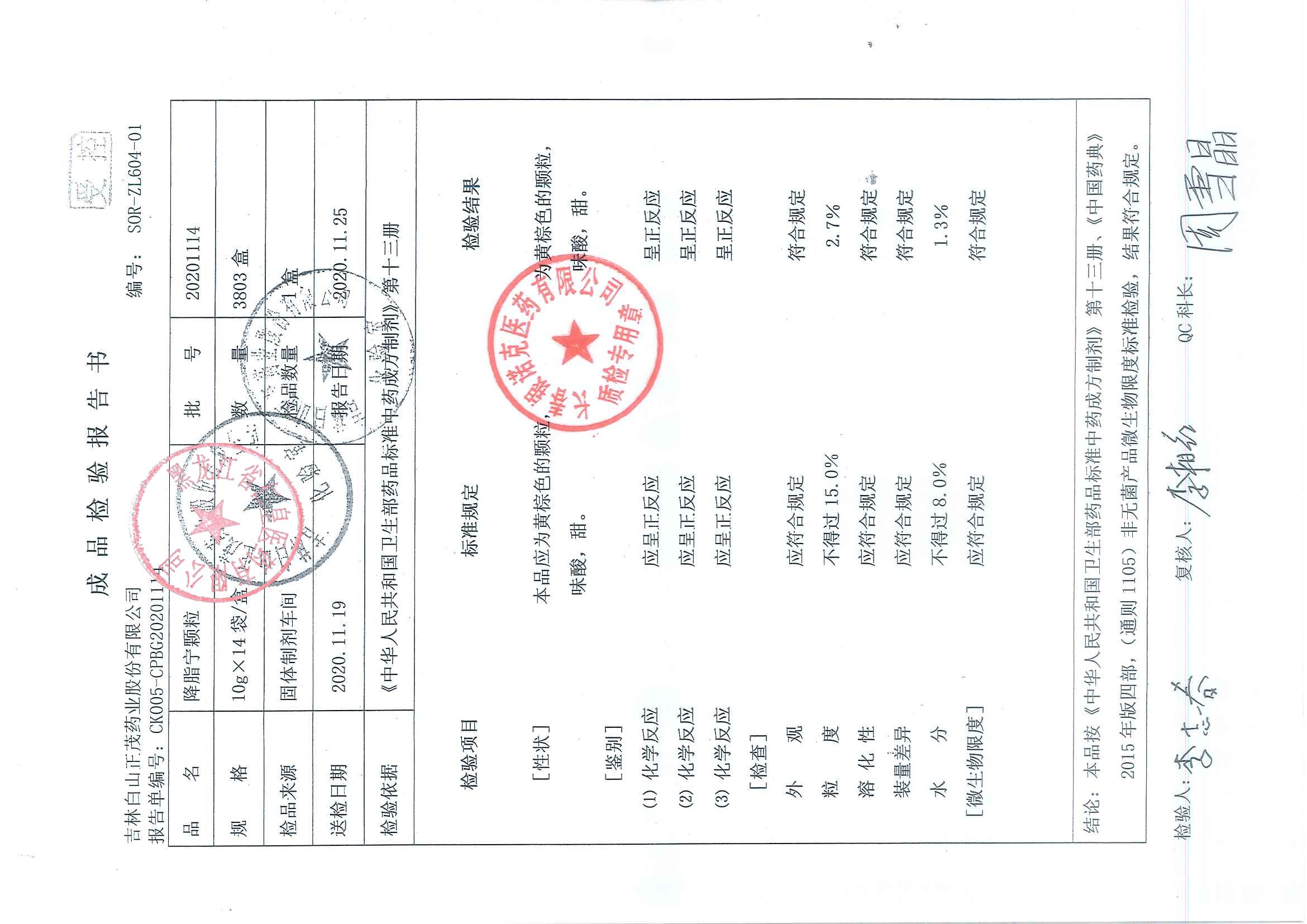 降脂宁颗粒20201