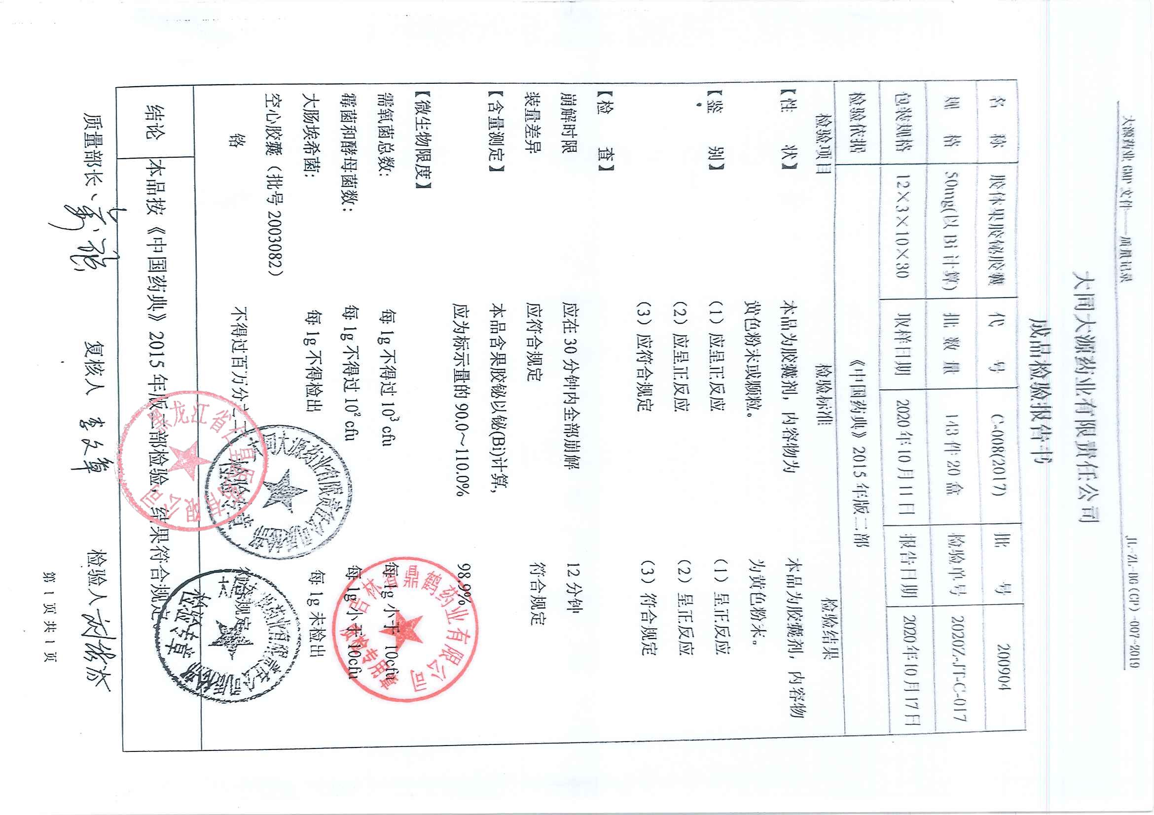 胶体果胶铋胶囊210