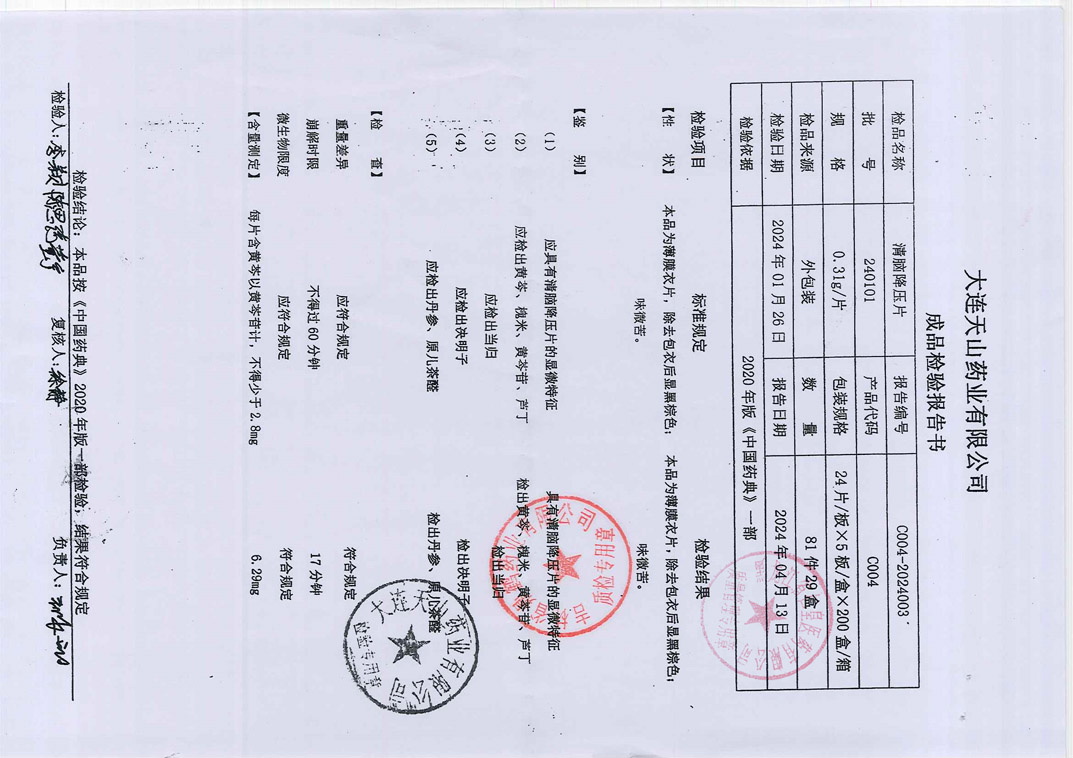 清脑降压片24010