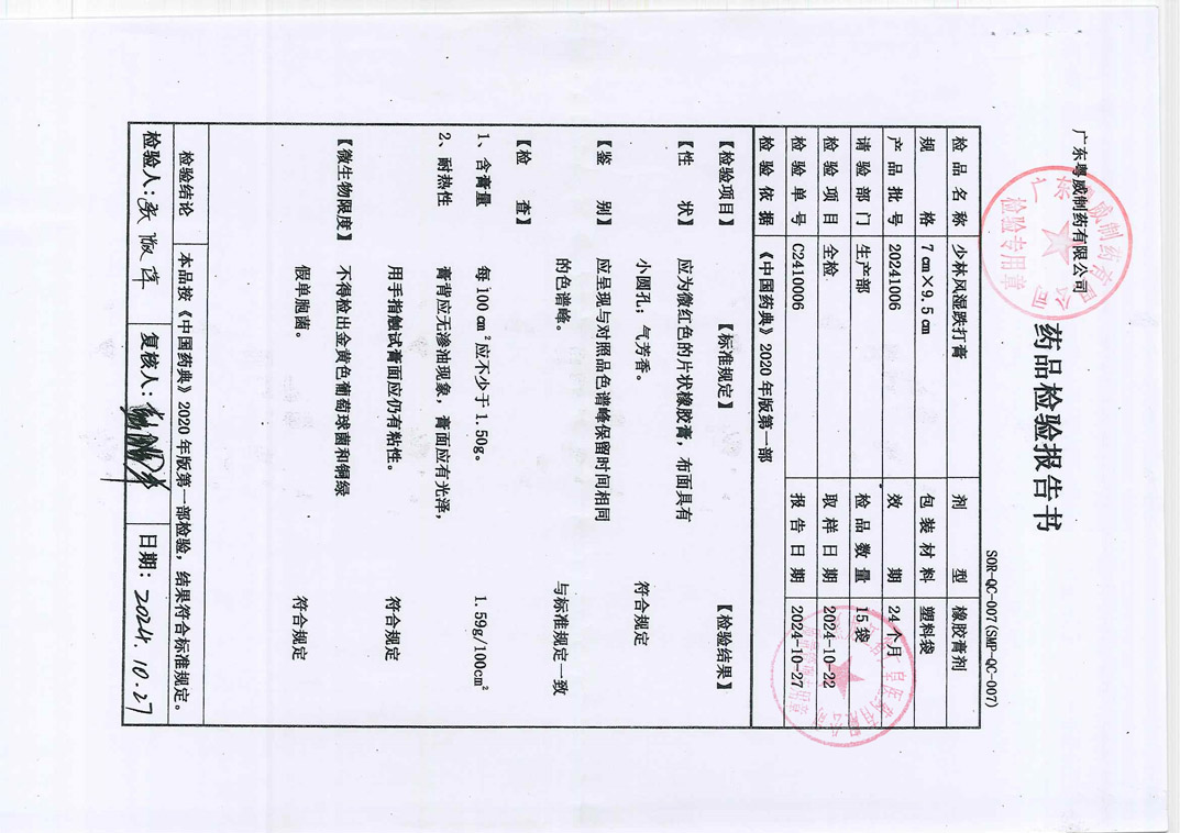 少林风湿跌打膏202