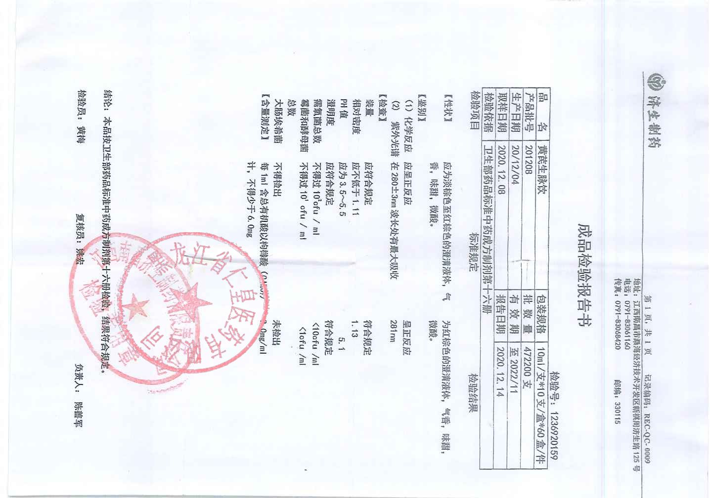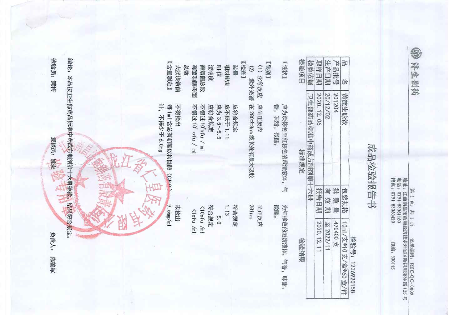 黄芪生脉饮20103