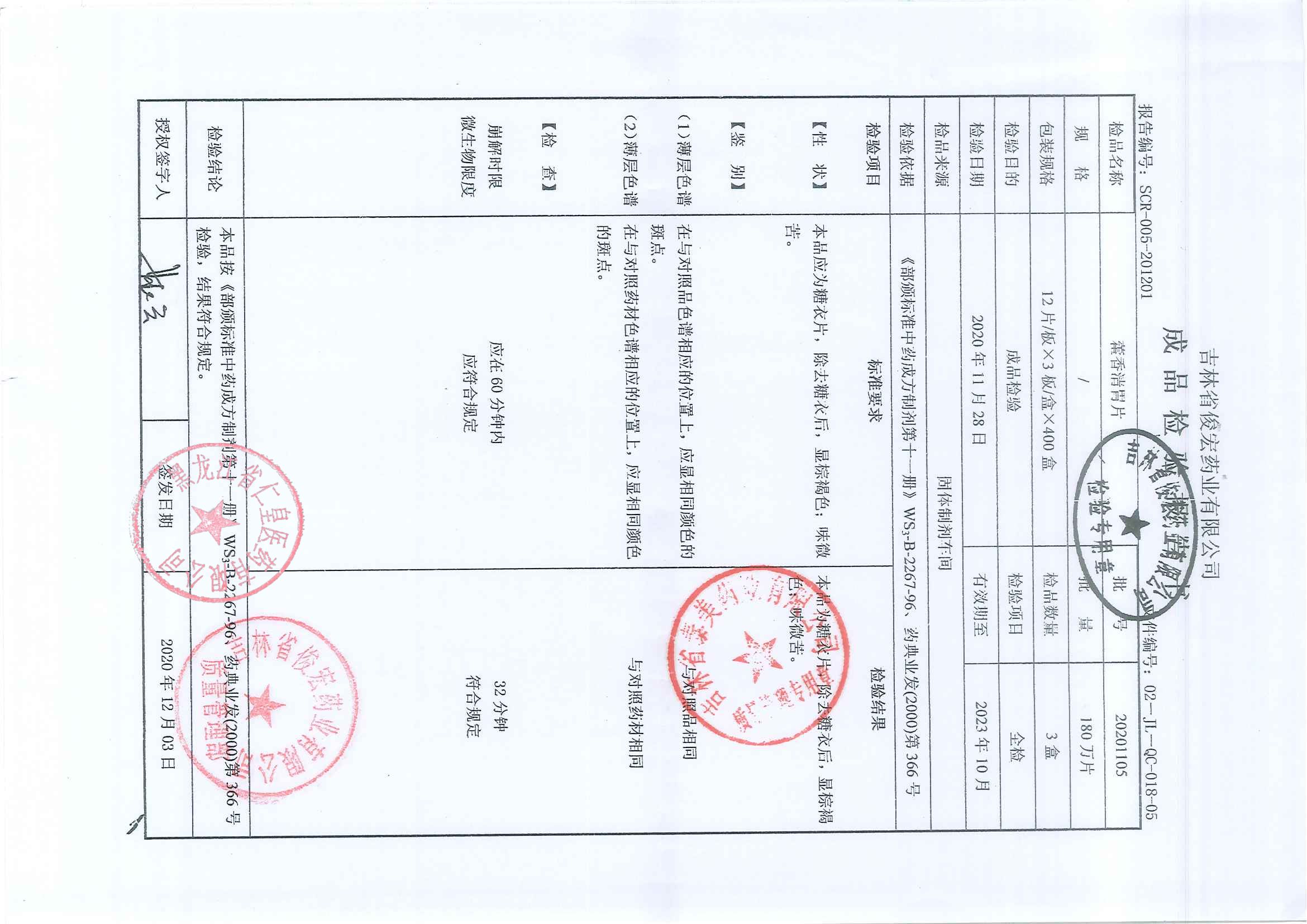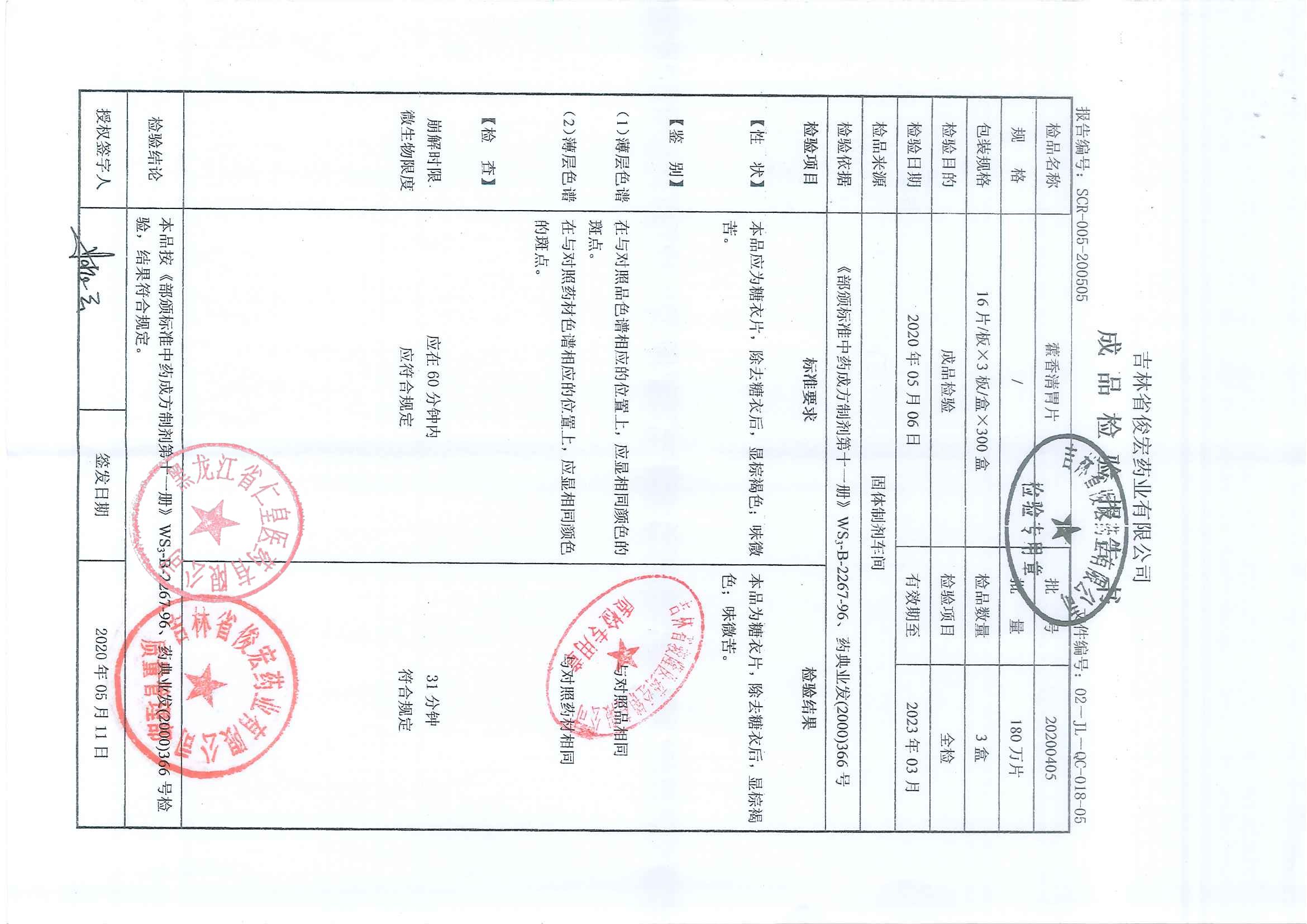 藿香清胃片20201