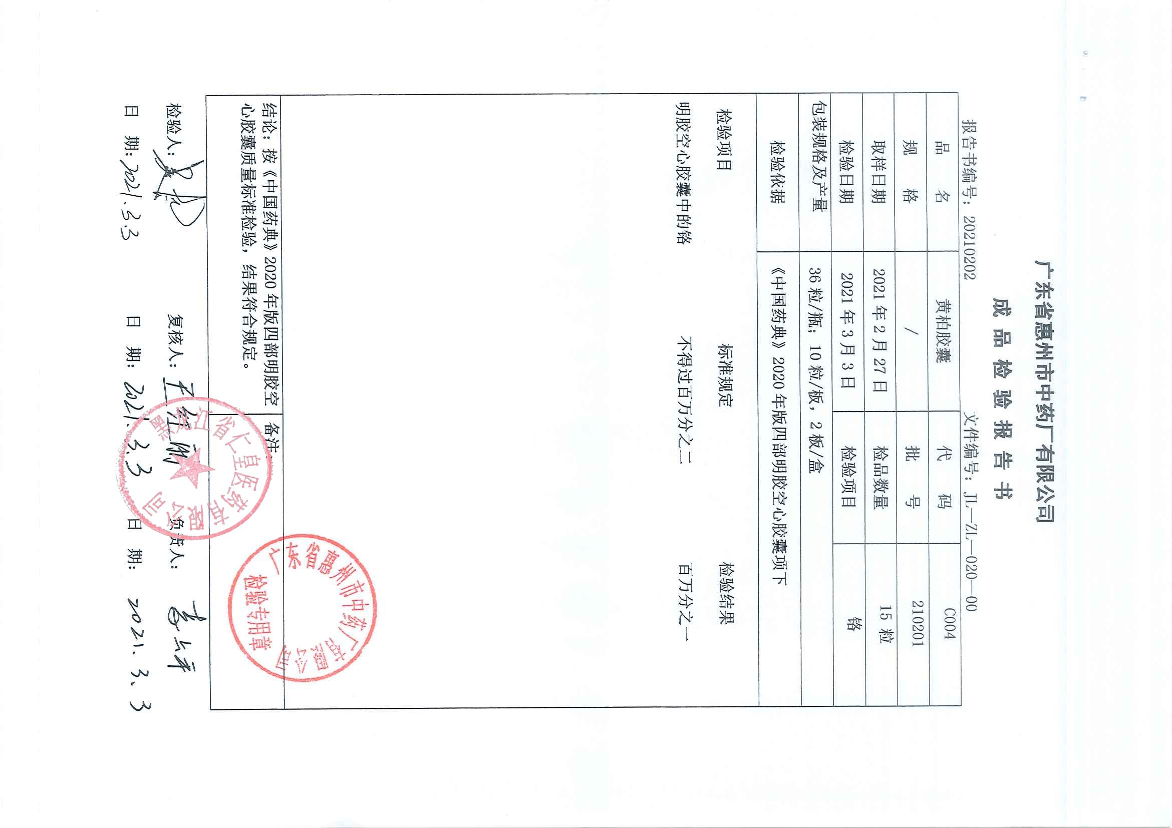 黄柏胶囊210201