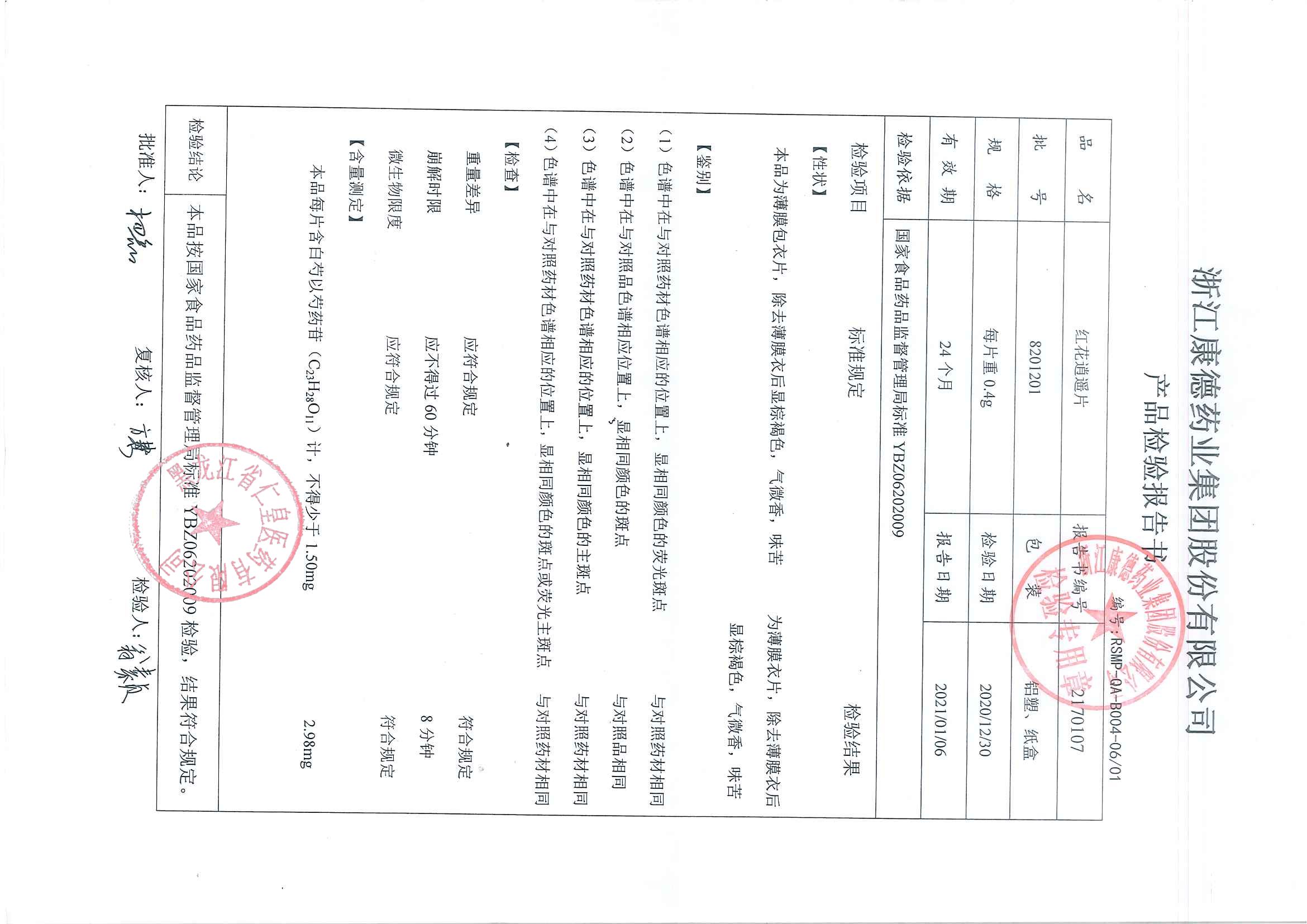 红花逍遥片82011