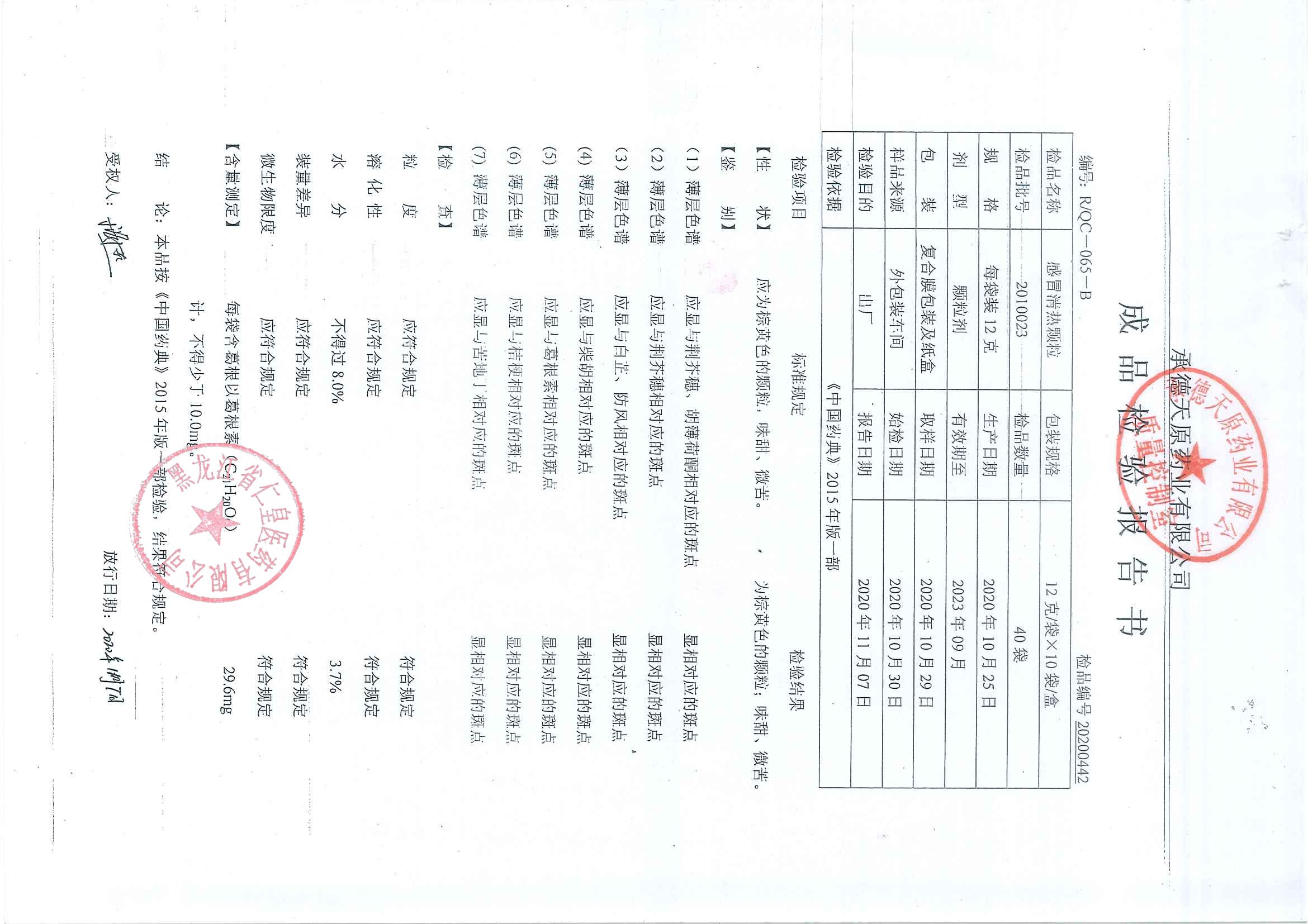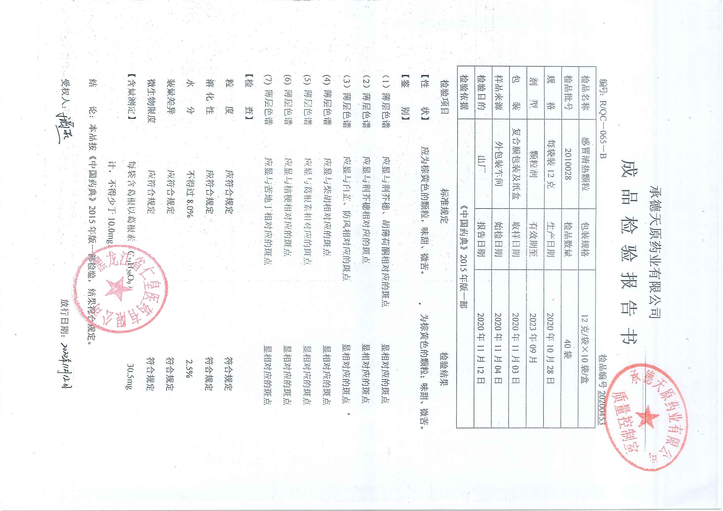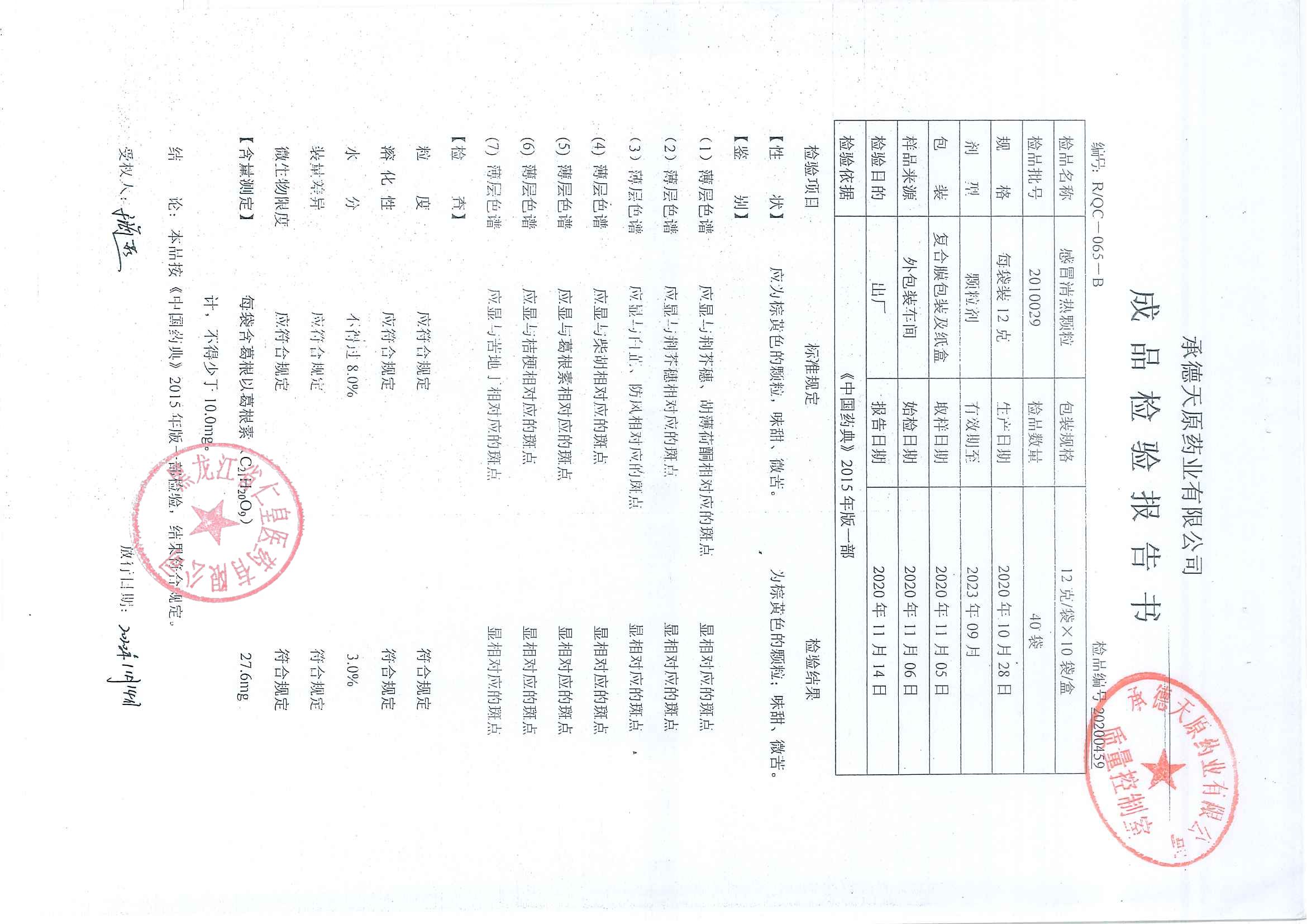 感冒清热颗粒2010