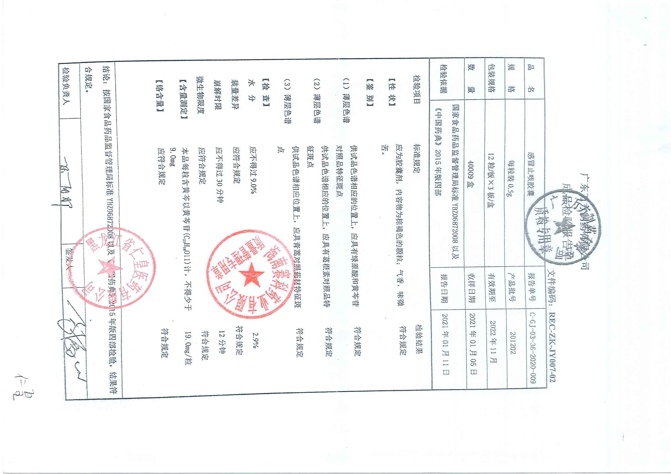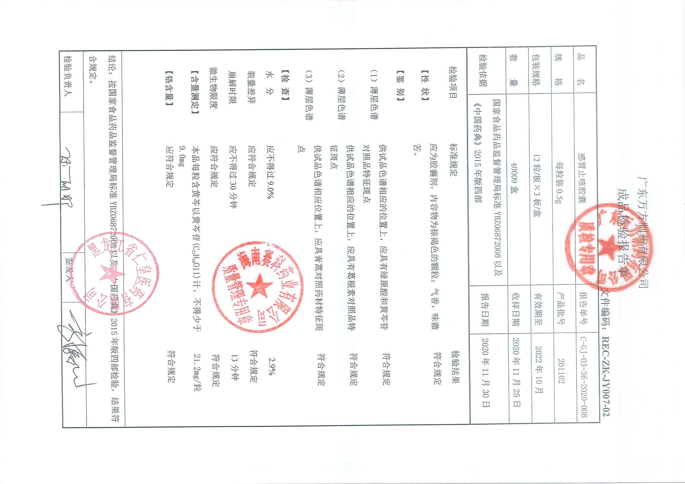 感冒止咳胶囊2011