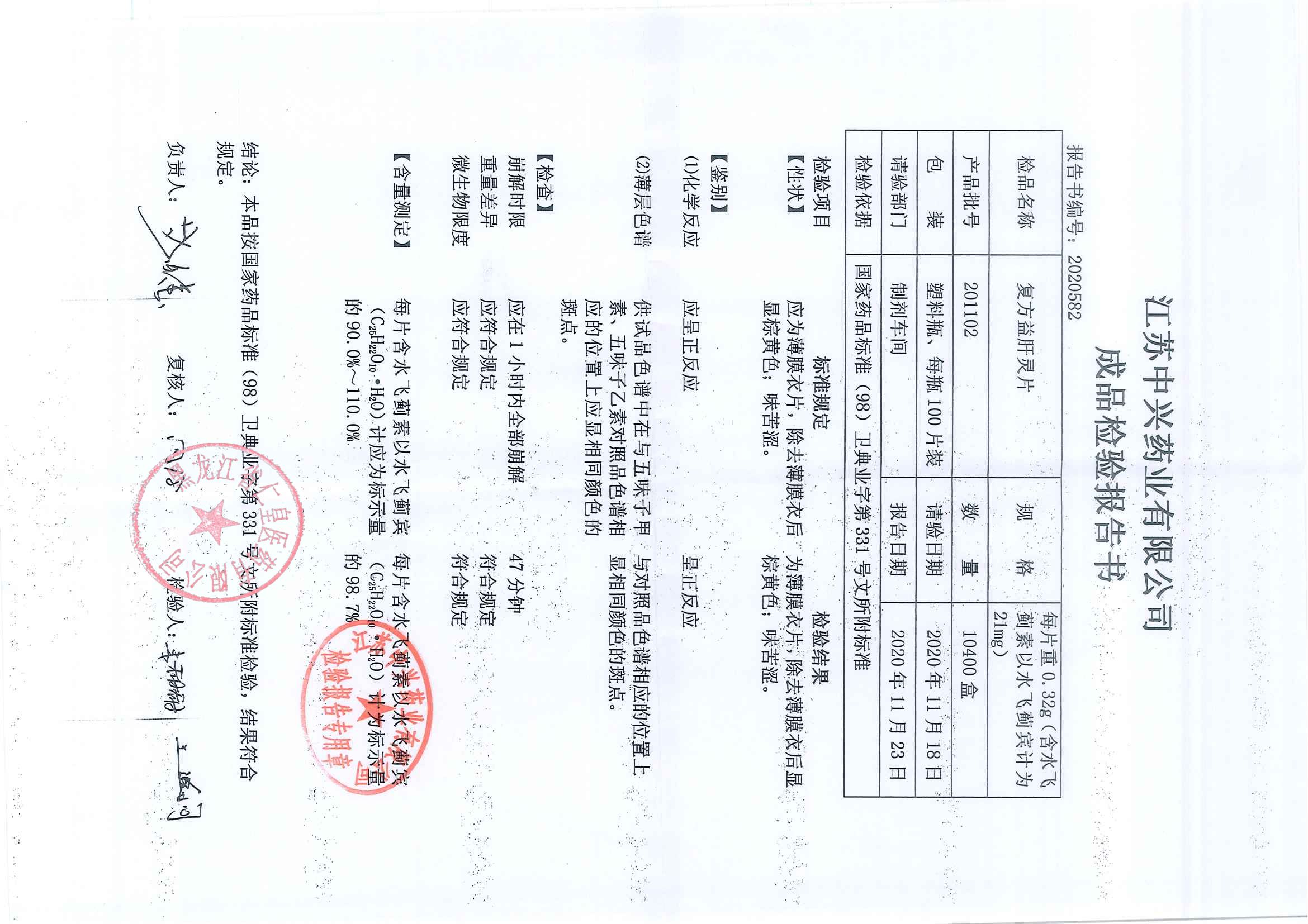复方益肝灵片2011