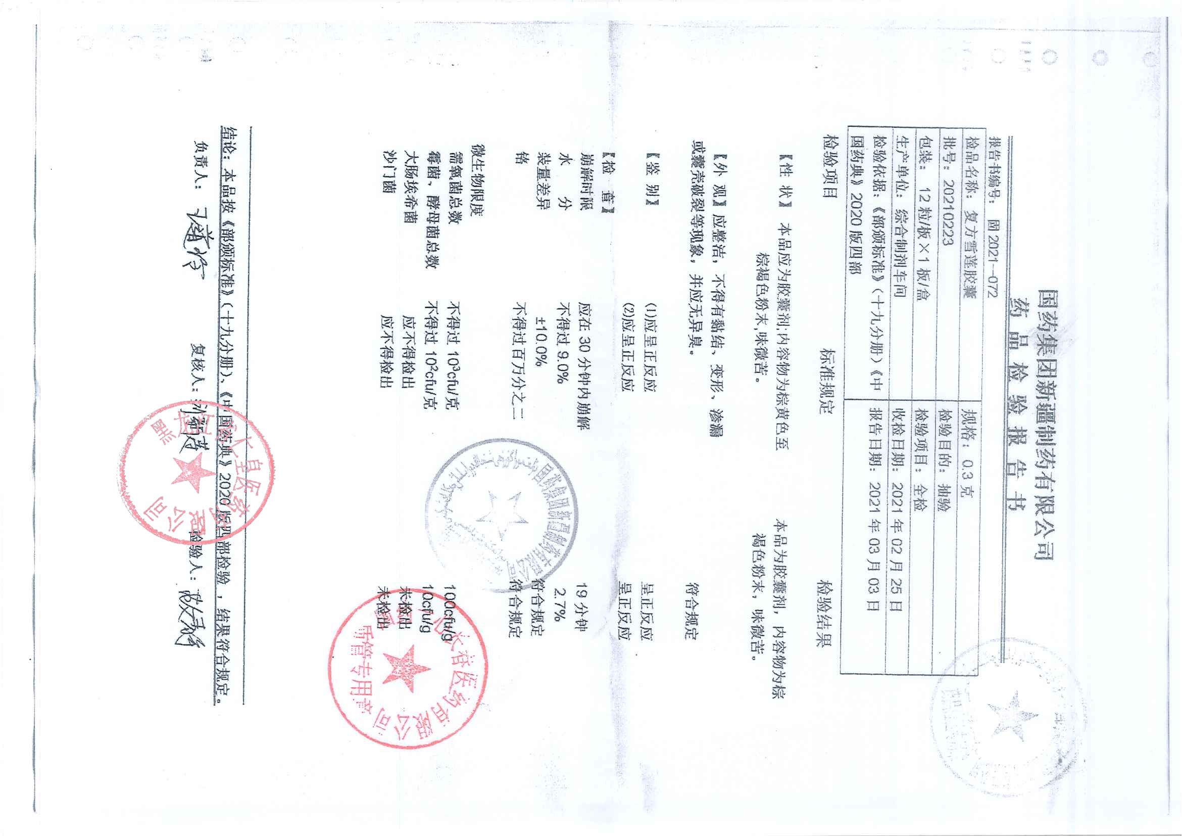 复方雪莲胶囊2021