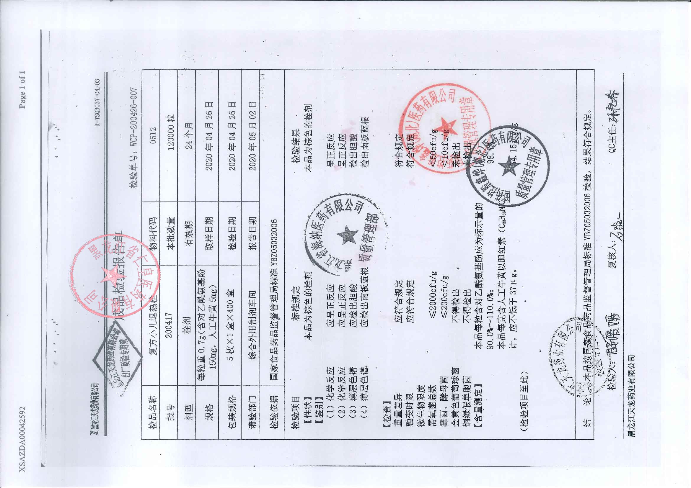 复方小儿退热栓200