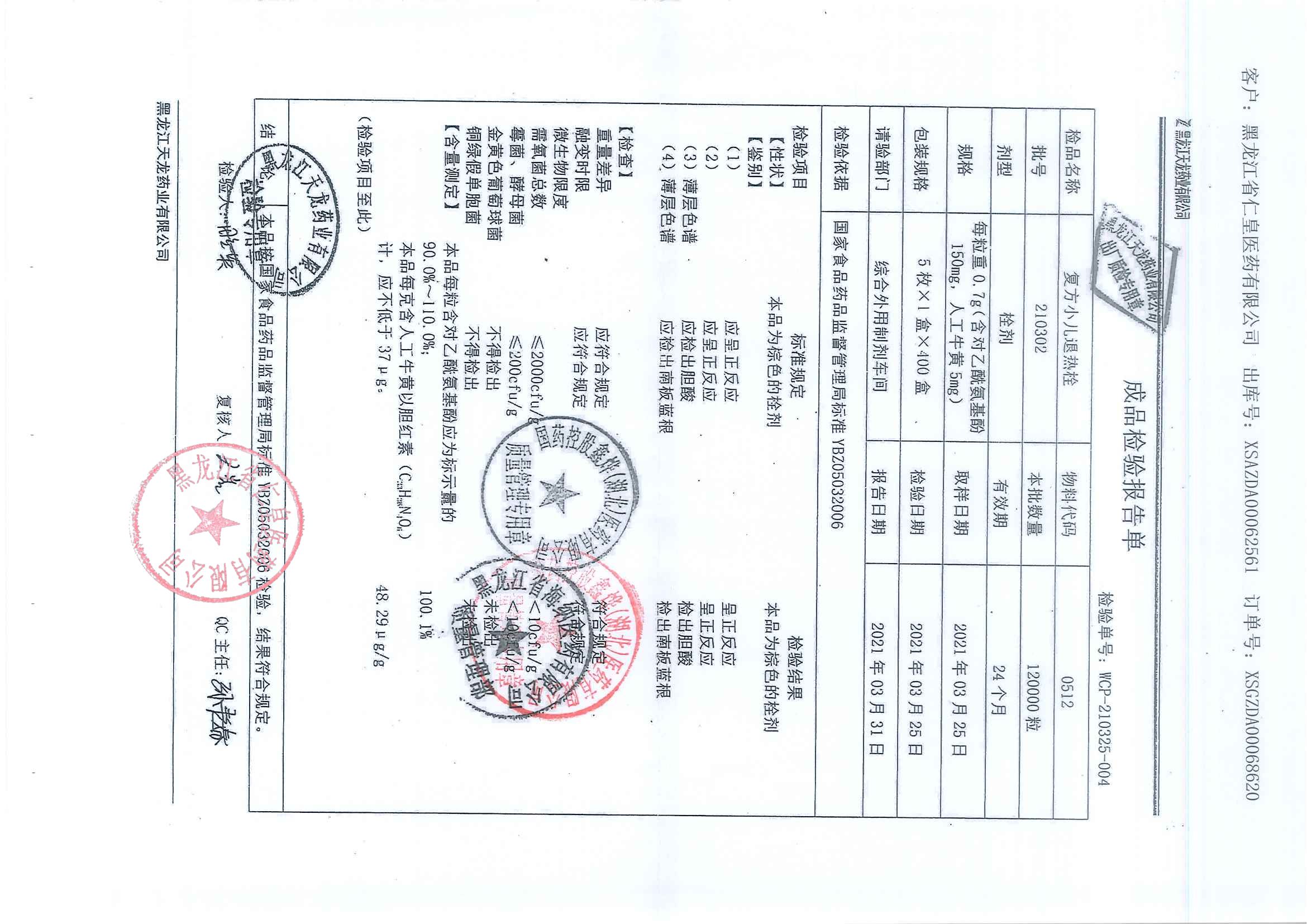 复方小儿退热栓210