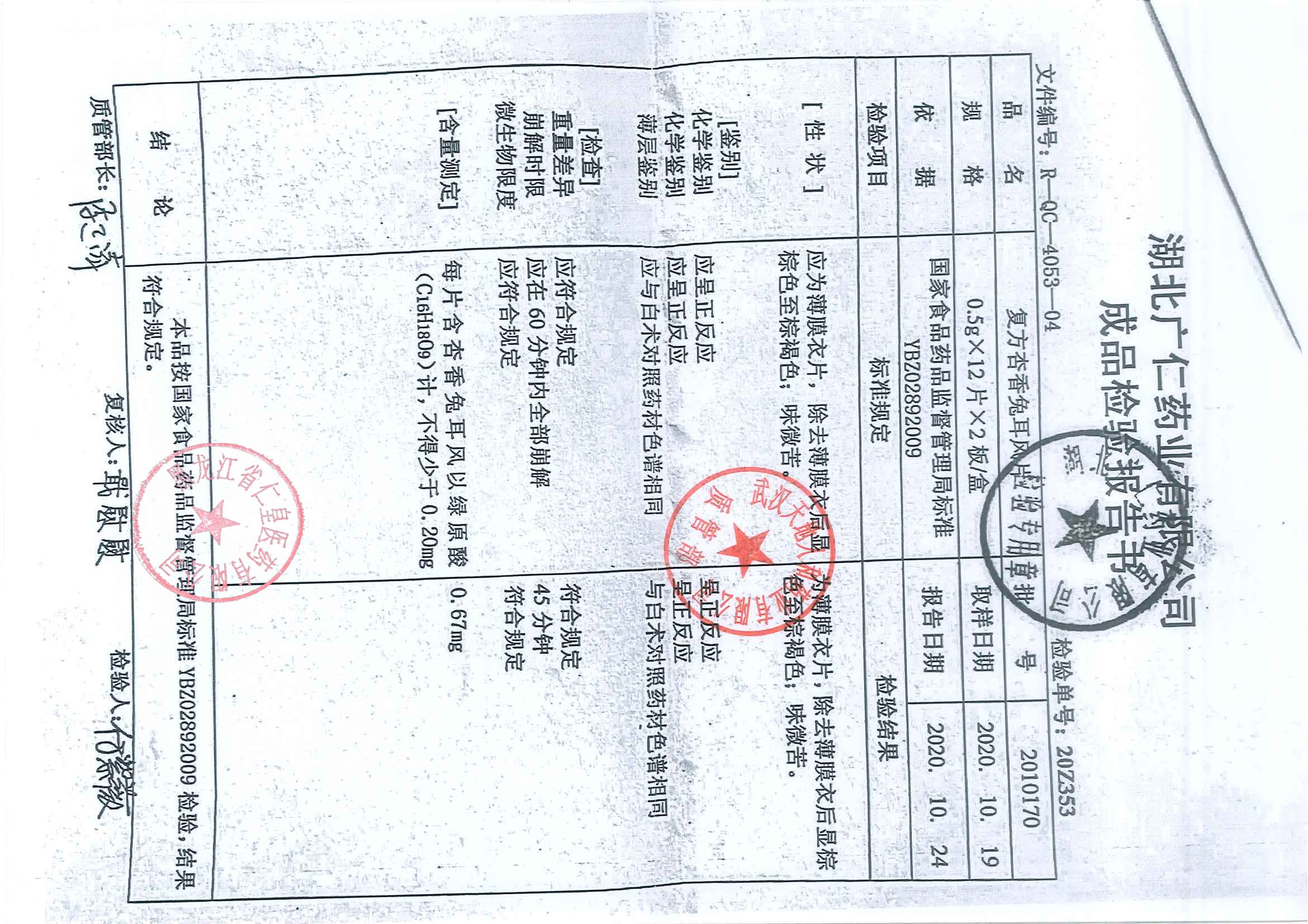 复方杏香兔耳风片20