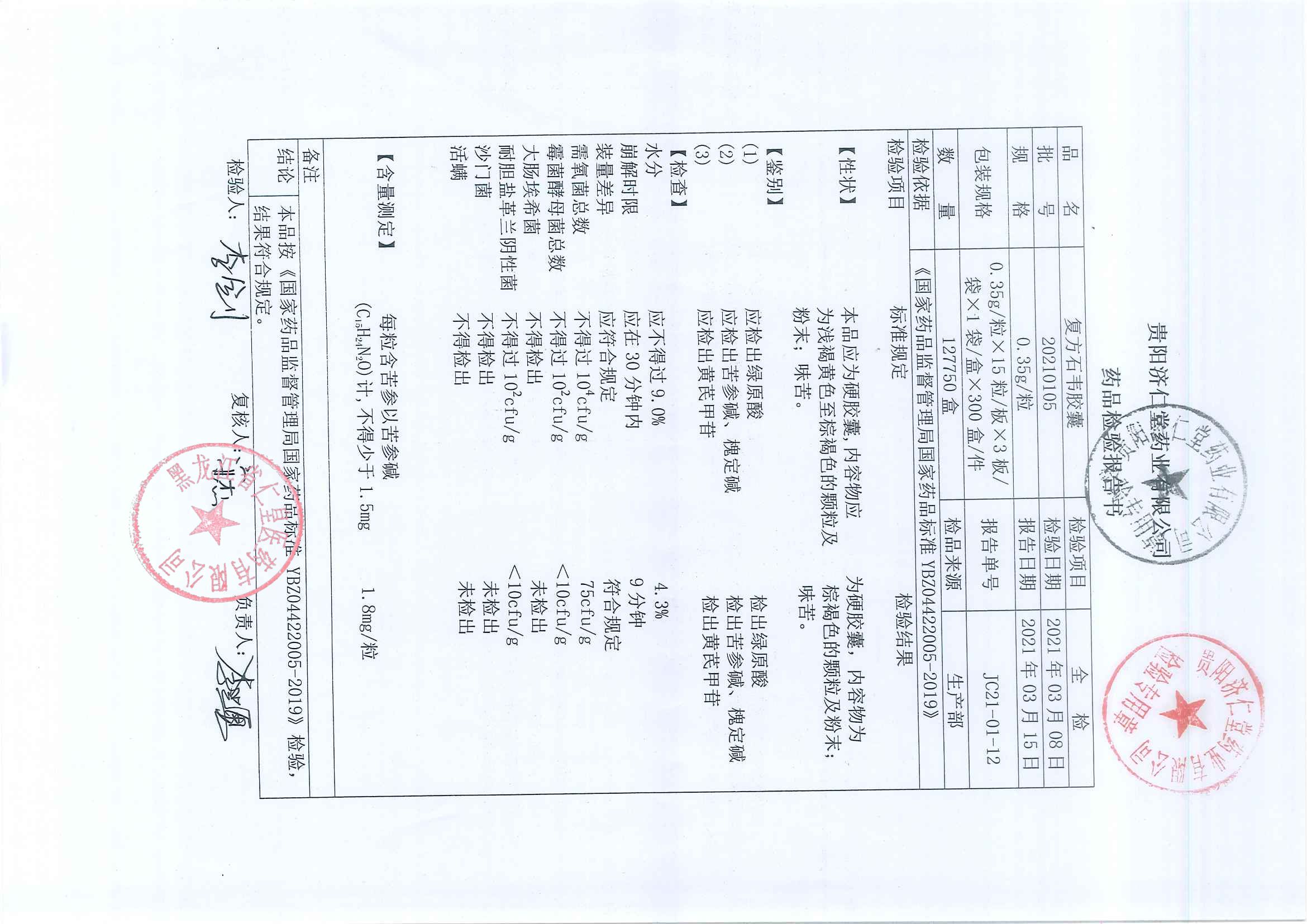 复方石韦胶囊2021