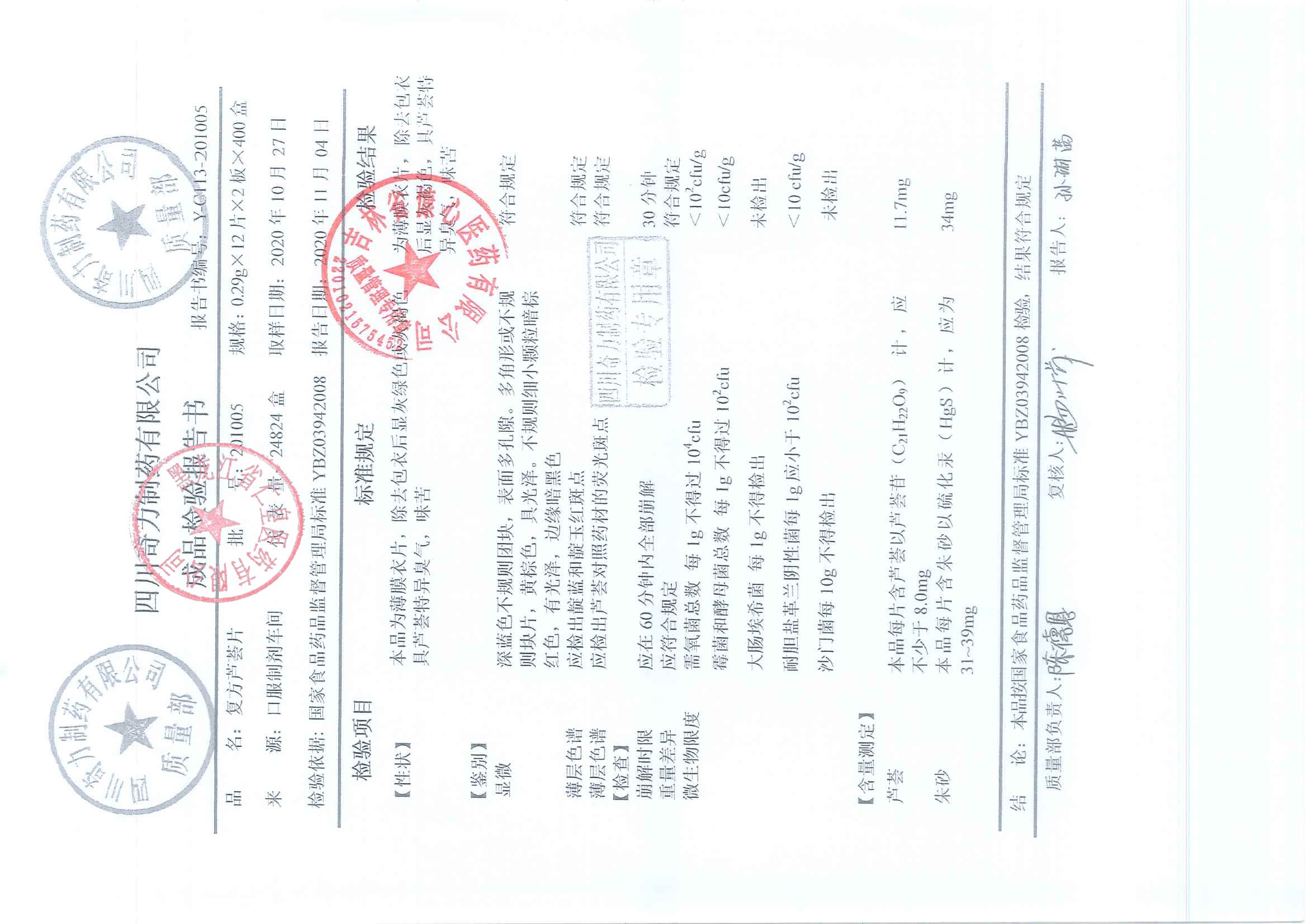 复方芦荟片20110