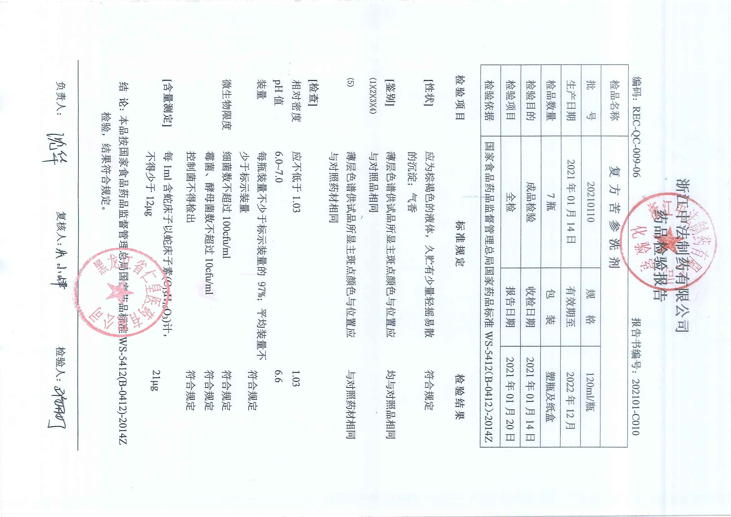 复方苦参洗剂2021