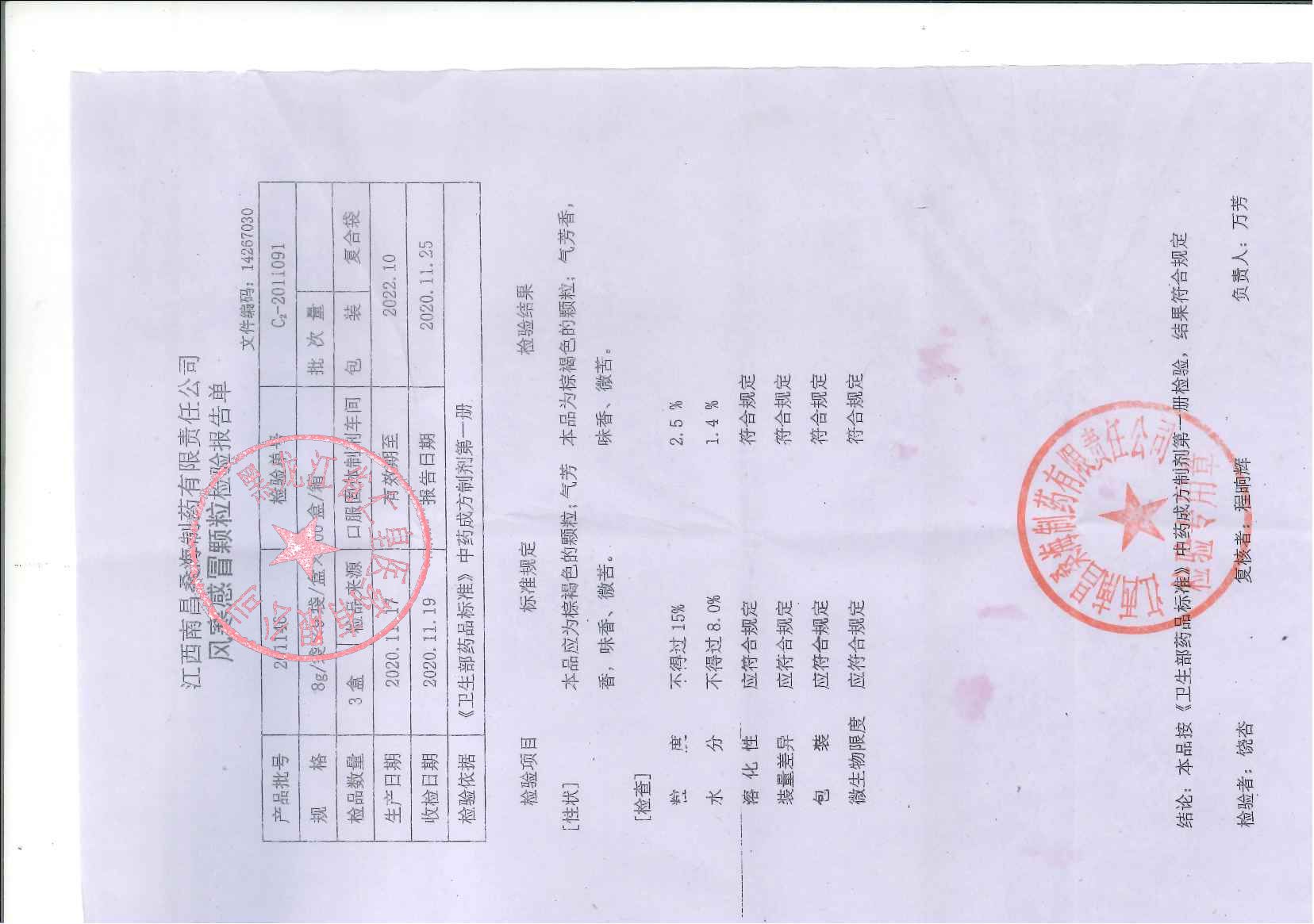 风寒感冒颗粒2011
