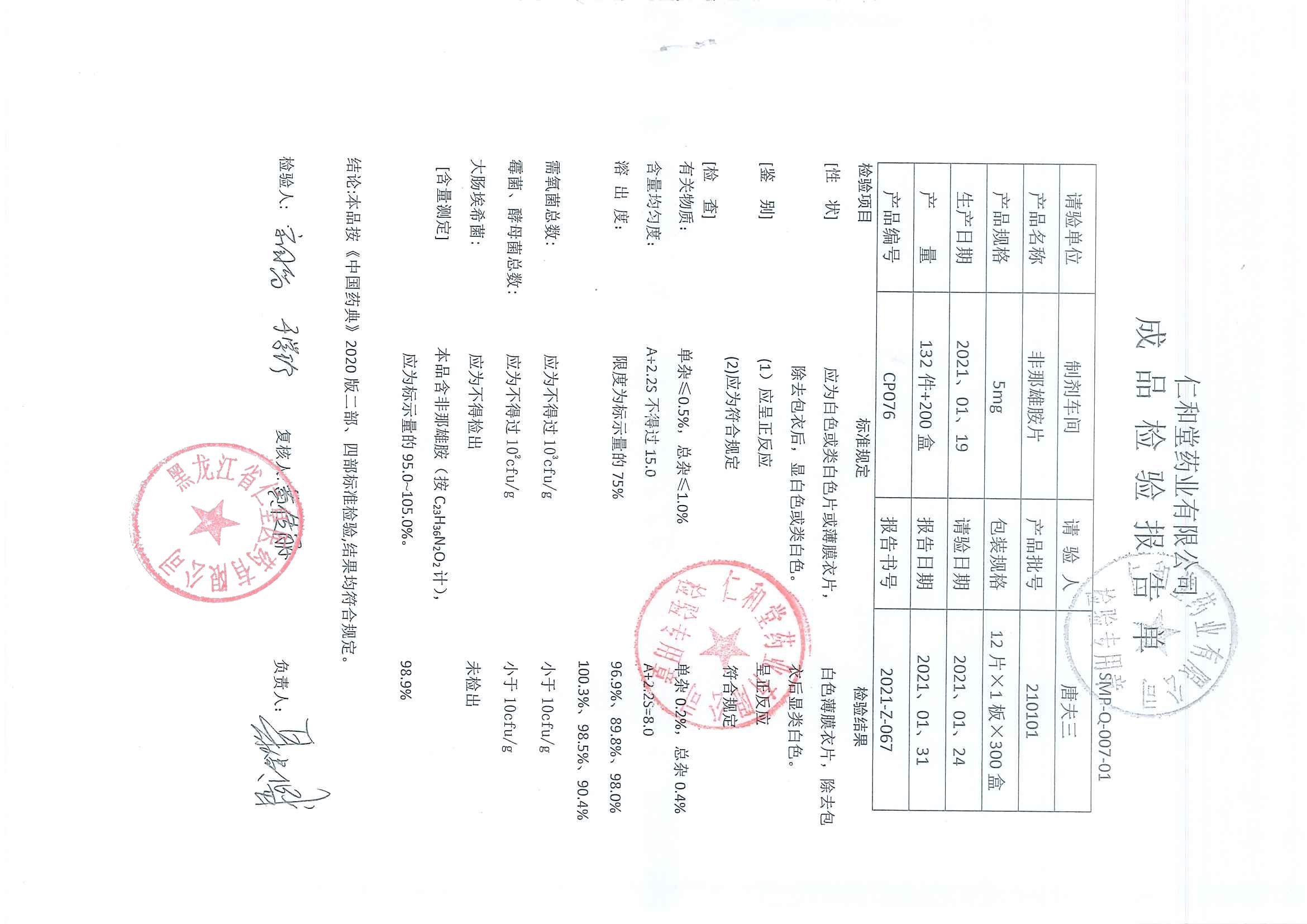 非那雄胺片21010