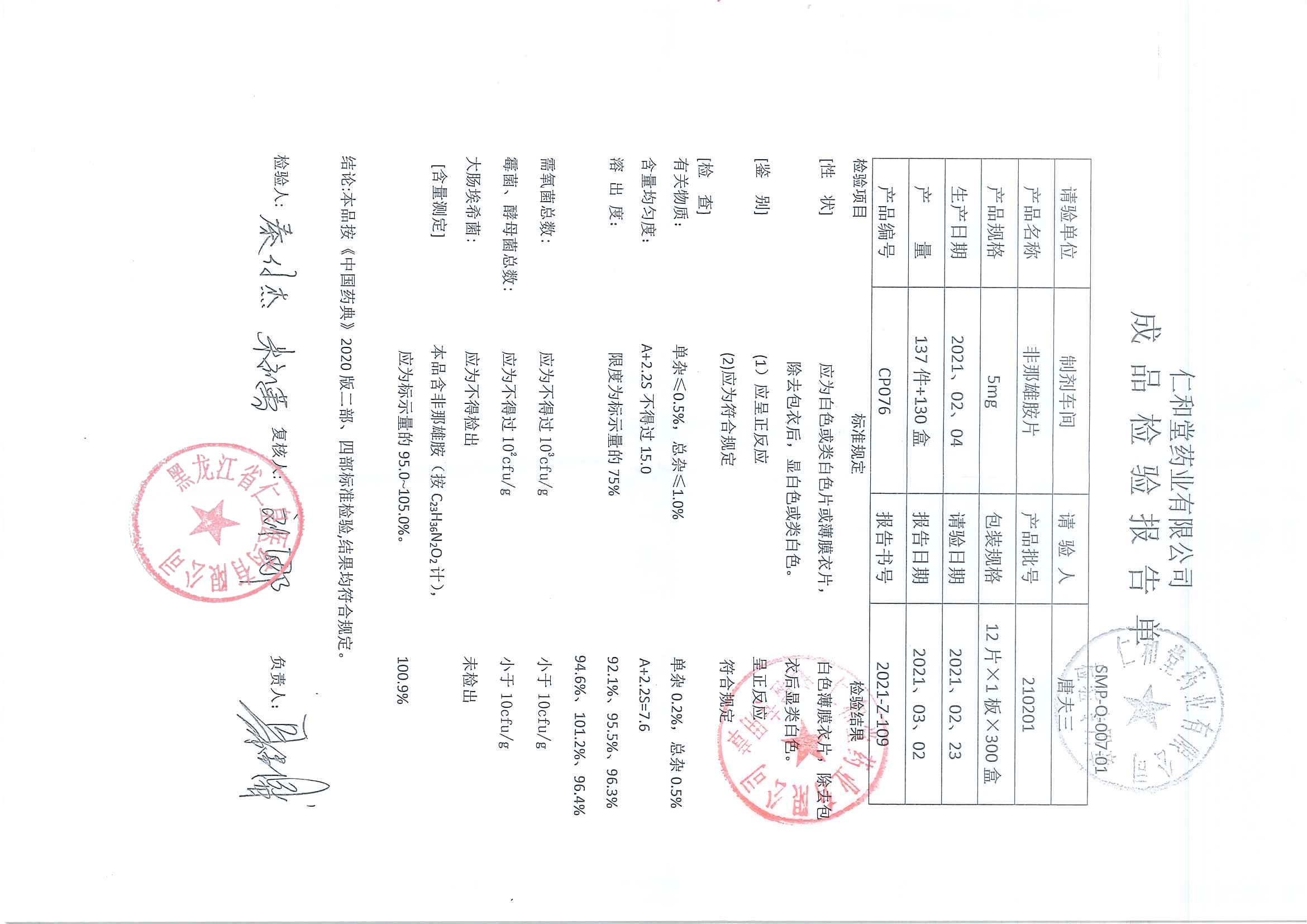 非那雄胺片21020