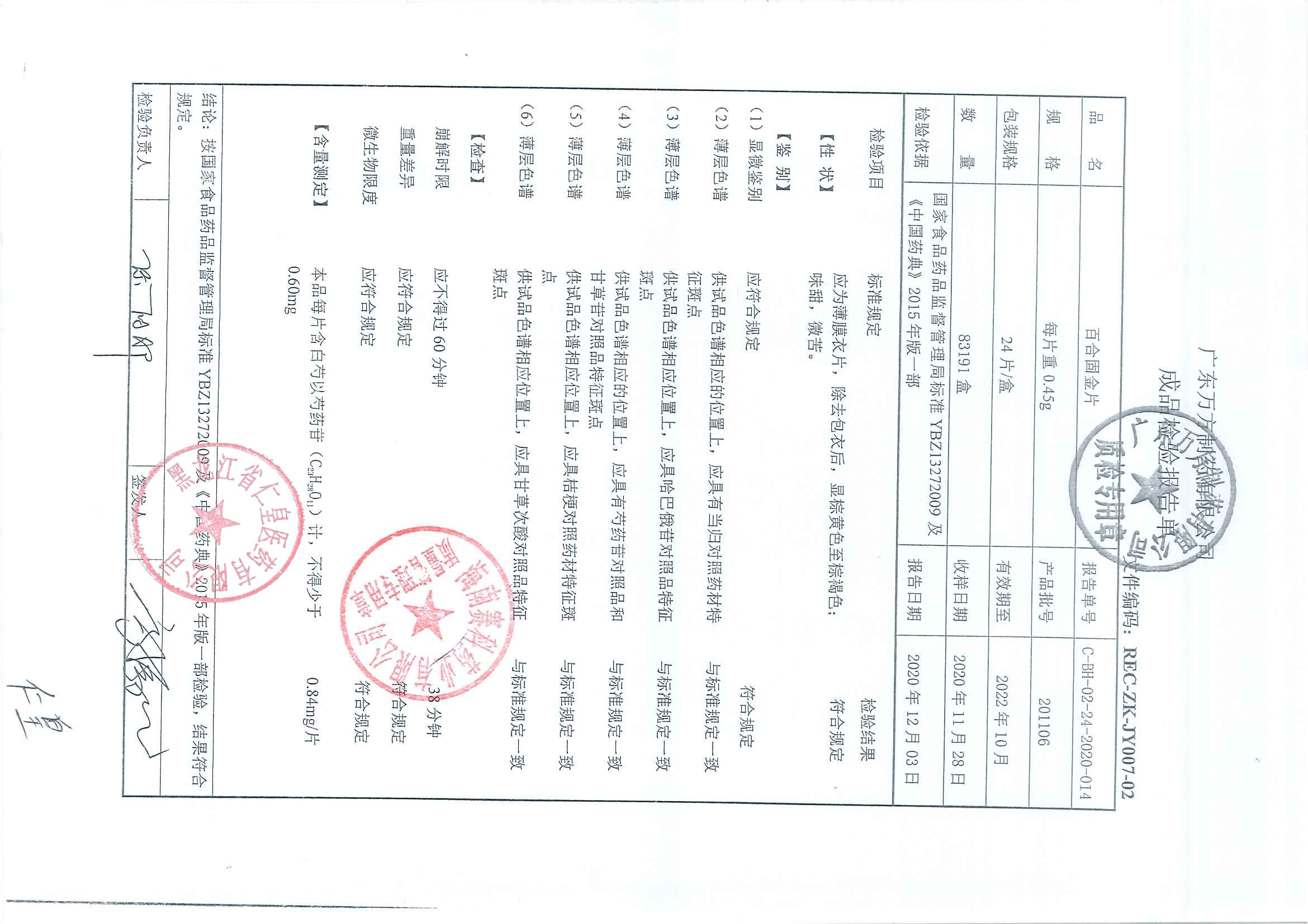 百合固金片02212