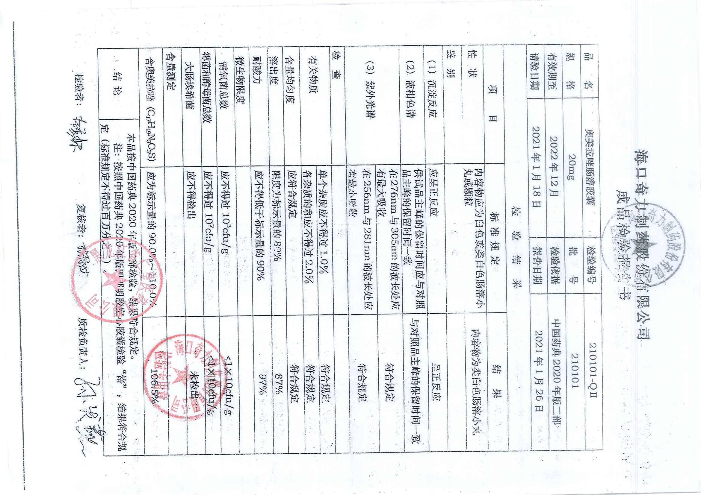 奥美拉唑肠溶胶囊21