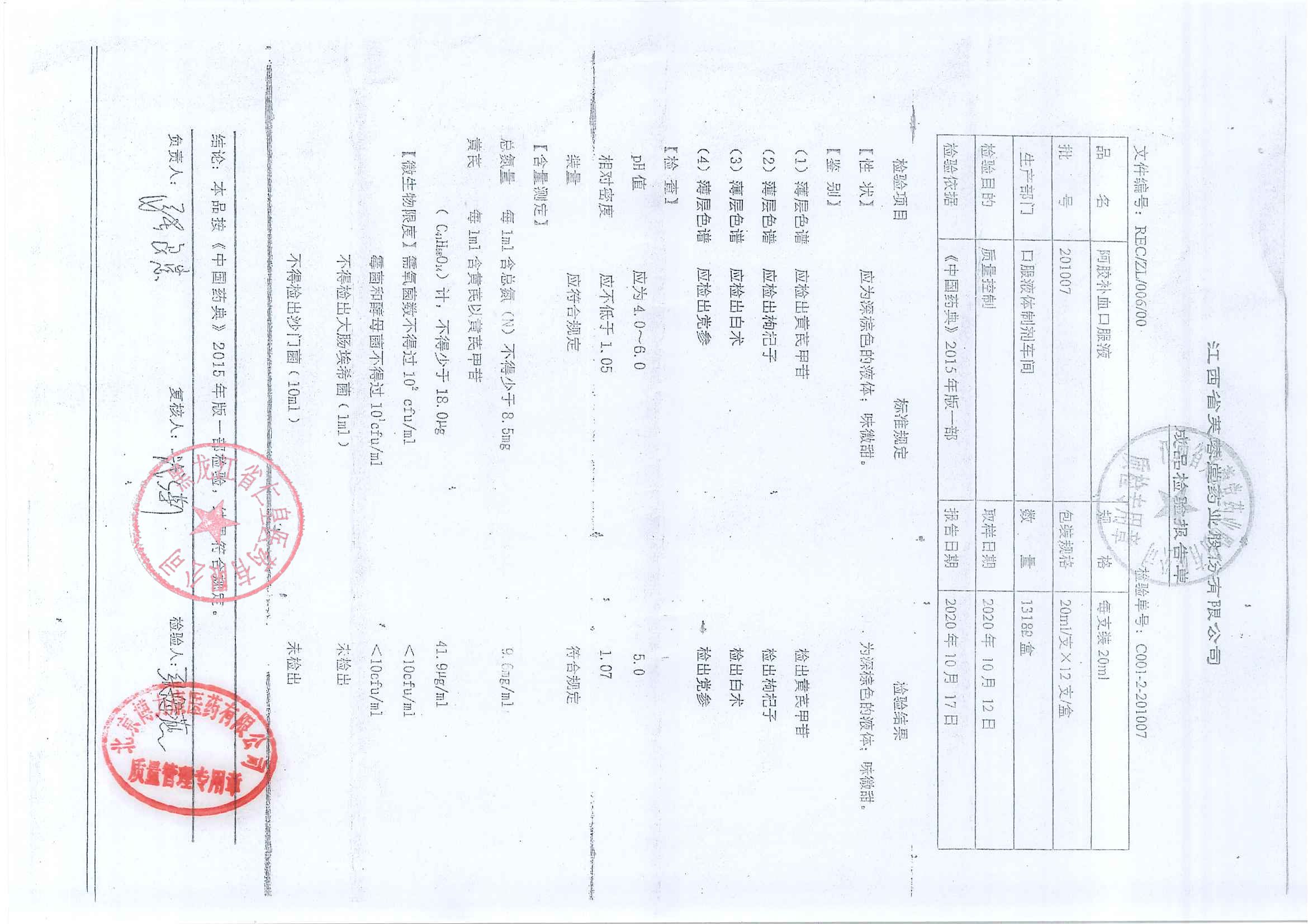 阿胶补血口服液201