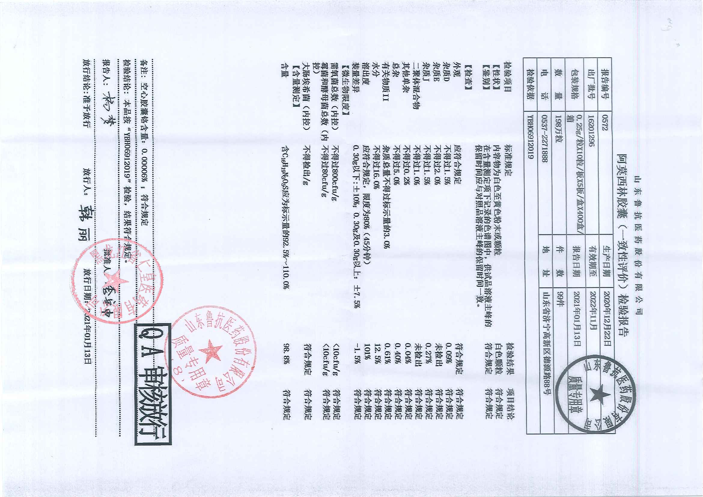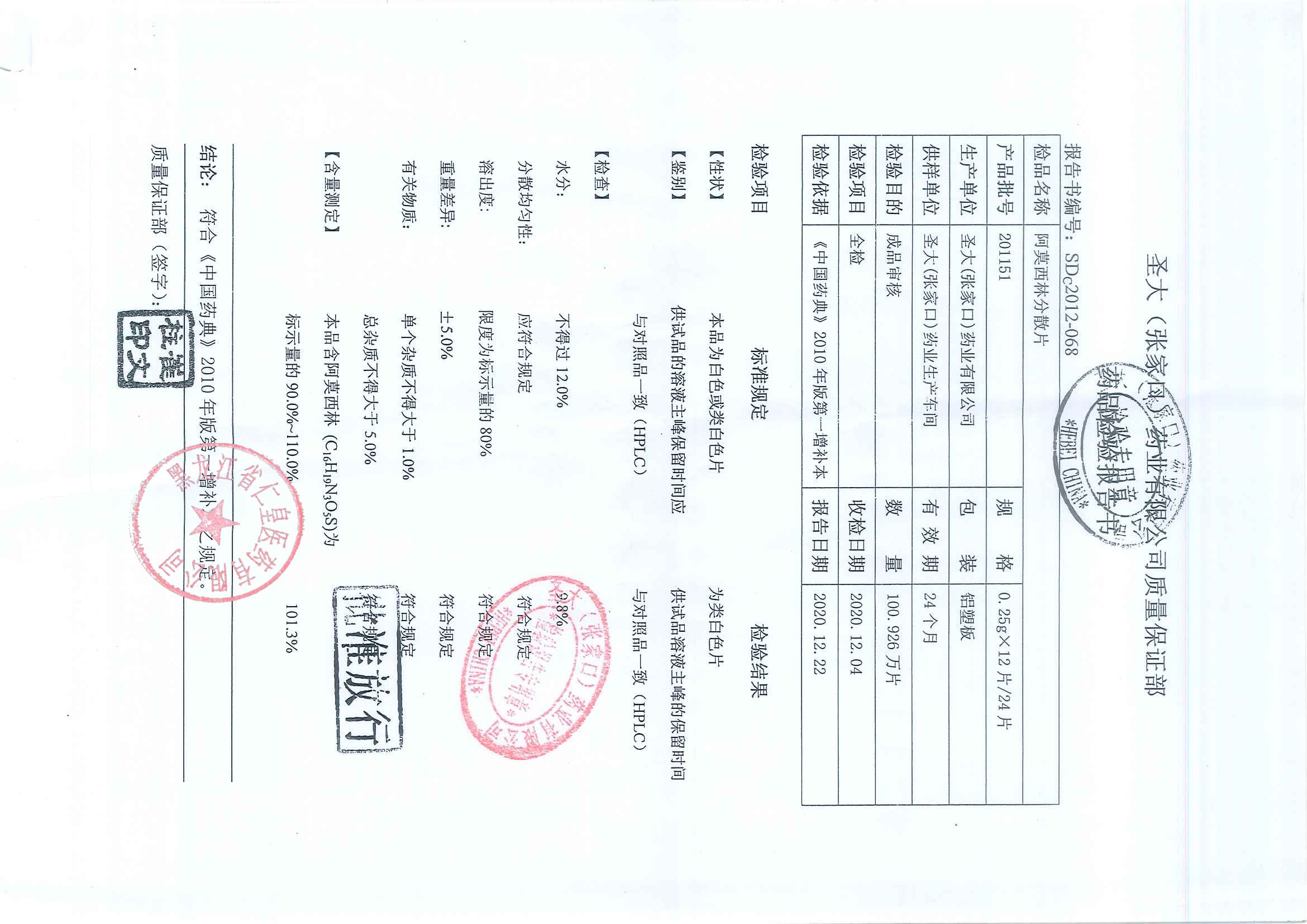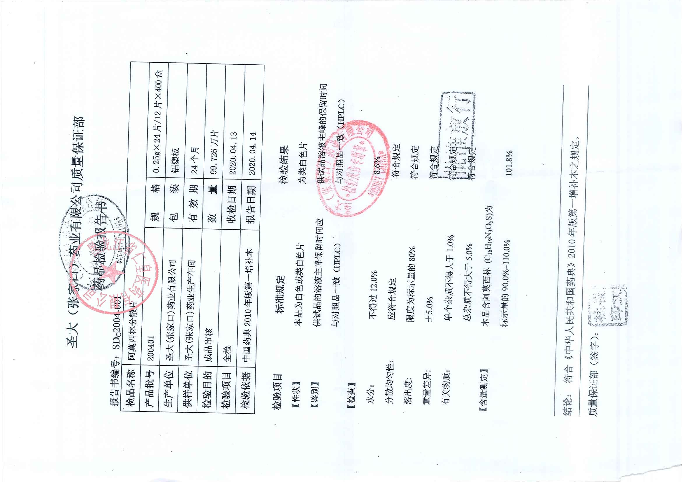 阿莫西林分散片201